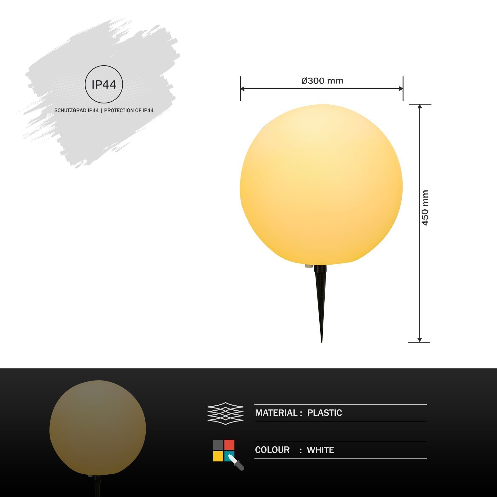 Globo Gartenleuchte GLOBO Außenleuchte Boden Erdspess Außenlampe Rund