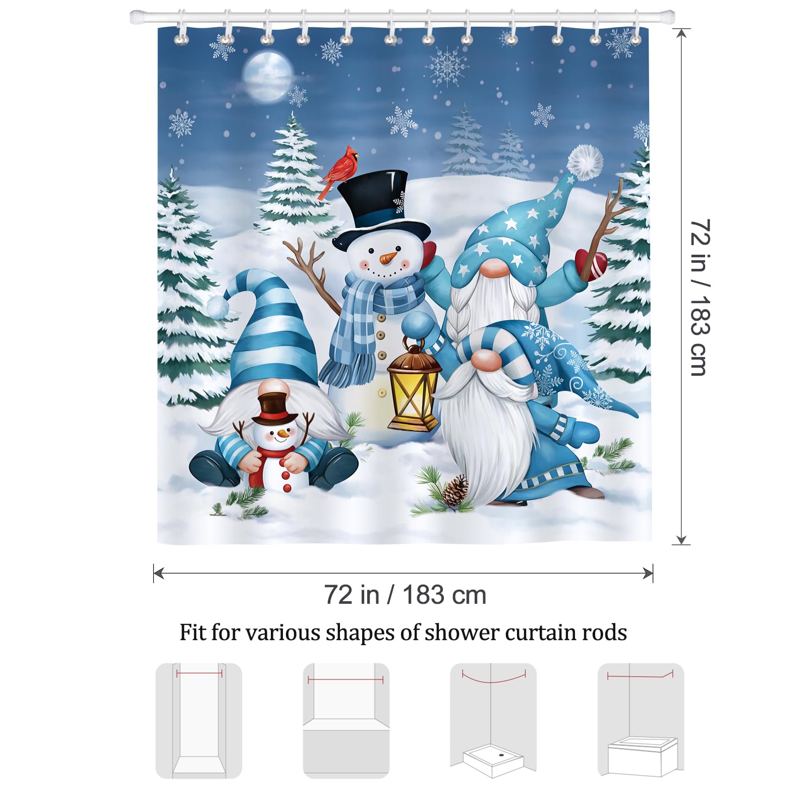 Bonhause Duschvorhang Weihnachten GNOME Xmas Kiefern Kardinal