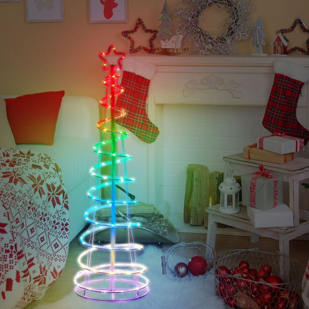 GOPLUS LED Spiral Weihnachtsbaum, 210cm Lichterbaum Deko Mit 341 LED-Lichtern & 34 Beleuchtungsmodi, Beleuchtete Weihnachtsdekoration Baum Mit Metallständer Für Innen & Außen