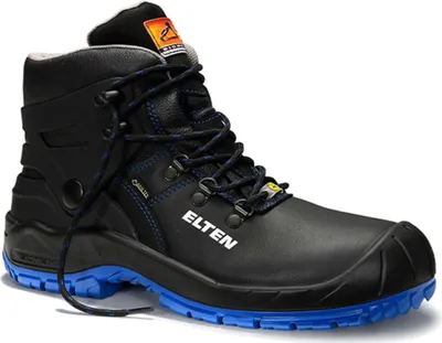Sicherheitsschnürstiefel Renzo ELTEN Biomex GTX BOA® Blue Mid ESD S3 | GORE-TEX | ELTEN STORE Elten Sicherheitsschuhe S3 Grobstollige PU/PU-Sohle, rutschfest (SR), Laufsohle hitzebeständig bis 130 Grad C, Überkappe: PU-Spitzenschutz Die blaue SAFETY GRIP Sohle sorgt für optimalen Halt auf rutschigem Untergrund. Die breitere Passform (XW - extra weit) sorgt auch bei Menschen mit besonders breiten Füßen für ein komfortables und angenehmes Tragegefühl. Auffallend sicher. Das schwarze robuste Rindleder und die PU Überkappe können ordentlich einstecken und dank des atmungsaktiven Textilfutters ist auch im harten Einsatz für gutes Fußklima gesorgt. Der ALESSIO XW Mid ESD S3 fällt ins Auge. ELTEN Alessio Blue Mid ESD S3 767541 Unisex-Erwachsene Sicherheitsstiefel, 45 EU Elten Sicherheitsschnürstiefel Renzo Gtx Xw Mid Esd S3 Ci Gr. 42 ➜ bei kaufen! Baumarkt & Online-Shop 37 ➜ Arbeitsschuhe & Zubehör bei OBI kaufen! OBI Baumarkt & Online-Shop Die Stahlkappe und der metallfreie Durchtrittschutz schützen vor Gefahren von oben und von unten.