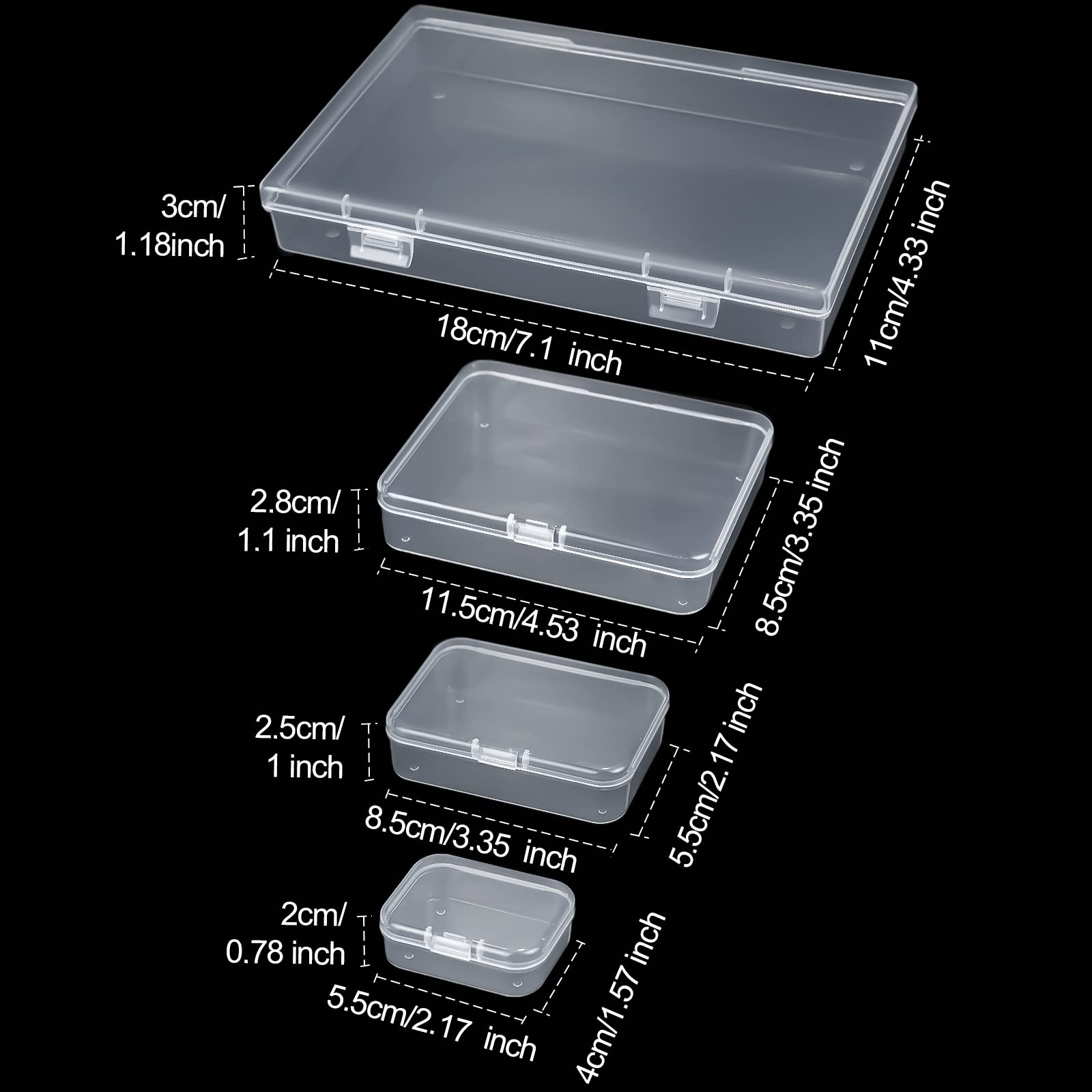 24 kleine Aufbewahrungsboxen aus stabilem, transparentem Kunststoff mit Klappdeckel. Jede Box ist 5,3 cm lang, 5,3 cm breit und 1,7 cm tief. Fasst bis zu 50 ml. Durchsichtige Aufbewahrungsbox: Platzsparend stapelbar, mit abgerundeten Ecken. Sortieren Sie kleine Gegenstände praktisch und verlieren Sie nichts mehr Sicher und tragbar: Jeder Perlenbehälter hat ein kleines Verriegelungsdesign, das die Gegenstände vor Staub, Schmutz und anderen Ablagerungen schützen kann, außerdem ist er leicht, einfach zu lagern und zu tragen Paket enthalten: 4 x Kunststoff-Boxen (18 x 10,9 x 3 cm). 【Premium-Material】Diese durchsichtigen Kunststoff-Aufbewahrungsboxen sind aus hochwertigem PP-Kunststoff, langlebig, nicht leicht zu brechen und können eine schnelle Identifizierung des Inhalts im Inneren ermöglichen Unsere Kunststoffboxen sind aus hochwertigem PP-Material, langlebig, leicht und ultra klar Körper ermöglicht eine schnelle Identifizierung des Inhalts., Blanko-Etiketten. 4 x Kunststoffboxen (11,4 x 8,4 x 2,8 cm) 8 x Kunststoffboxen (8,4 x 5,6 x 2,5 cm) 8 x Kunststoffboxen (5,6 x 4,1 x 2 cm)., 24 x Blanko-Etiketten., Hinweis: 1., Aufgrund der manuellen Messung kann es zu Abweichungen bei der Größe kommen., 2., Die Farbe kann aufgrund unterschiedlicher Bildschirmeinstellungen leicht abweichen. Genießen Sie eine einfache Identifizierung mit einem Set von 24 leeren Etiketten, die in jeder Bestellung enthalten sind, die personalisiert und auf jeden Aufbewahrungsbehälter geklebt werden können., Sichere Aufbewahrung. Eurobox Transportbox Lagerbox Behälter Lagerkiste Stapelbox Lagerkasten Box Aufbewahrungsboxen Klein GUUZI 9 Stück Gemischte Größen Rechteckige Durchsichtige Mini-Kunststoffperlen-Aufbewahrungsbox Bastel Organizer 24-teiliges Set transparente Aufbewahrungsboxen aus Kunststoff mit Deckeln, gemischte Größen, rechteckige Behälter für Perlen, Schmuck und die Organisation kleiner Gegenstände, Bastelarbeiten, Perlenaufbewahrung, Perlen- und Schmuckherstellung 4 verschiedene Größen: Jede Kunststoffbox misst 18 x 10,9 x 3 cm, 11,4 x 8,4 x 2,8 cm, 8,4 x 5,6 x 2,5 cm und 5,6 x 4,1 x 2 cm; verschiedene Größen machen es geeignet, kleine Gegenstände nach Ihren Bedürfnissen zu trennen