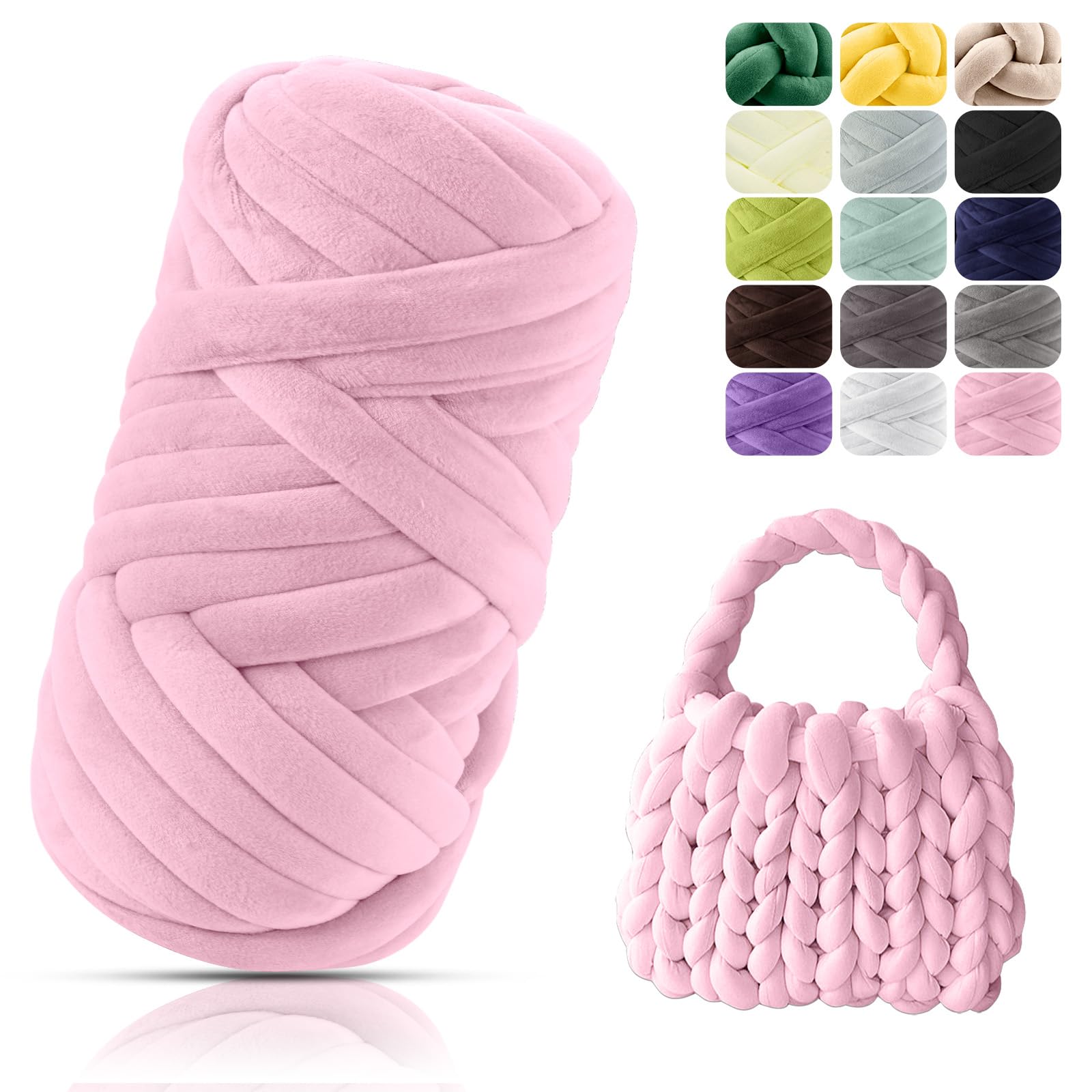 POFIBO Dicke Wolle Garn, 500g Chunky XXL Wolle Zum Handstricken, Handstrickwolle, Handstrickgarn, Armstricken Dickes Garn Zum Häkeln Für Anfänger, Decken, Körbe, DIY-Kunsthandwerk, 16m, Rosa