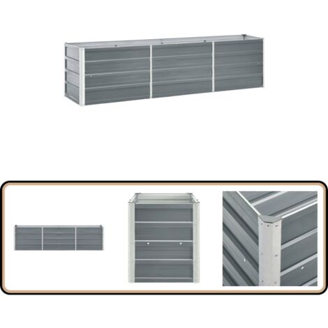 DOTMALL Hochbeet Garten-Hochbeet 240 x 80 x 81 cm Verzinkter Stahl Grau Der Verzinkungsprozess erhöht nicht nur seine Festigkeit, sondern bietet auch eine unvergleichliche Beständigkeit gegen Rost und Korrosion Die transparente PVC-Abdeckung schützt Pflanzen effektiv vor Kälte und Wind Design mit offenem Boden: Das Design mit offenem Boden kann effektiv Wasseransammlungen und Verfall vermeiden, bietet eine gute Drainage, schützt die Wurzeln der Pflanzen und ermöglicht es den Wurzeln, Nährstoffe besser zu absorbieren und gegen Schädlinge zu schützen Außerdem können Sie mit zwei großen aufrollbaren Reißverschlussfenstern Ihre Pflanzen leicht gießen. Dieses Hochbeet aus verzinktem Stahl ist die ideale Wahl, um Blumen, Kräuter oder Gemüse anzubauen – eine großartige Bereicherung für jeden Garten! Das Hochbeet ist tief und breit genug, um eine große Menge Erde aufzunehmen und ausreichend Platz für Gemüse, Kräuter und Blumen zu bieten Hochbeet mit Gewächshausabdeckung, 1,8 x 91,4 x 91,4 Sein schlichtes, rechteckiges Aussehen macht ihn zu einem zeitgemäßen Deko-Gegenstand auf Ihrer Terrasse oder Ihrem Balkon. Dank tiefem, breitem Design nimmt er jede Menge Pflanzerde auf, in der anschließend verschiedene Blumen, Kräuter und Gemüsepflanzen wachsen und gedeihen können. Spezielles Design: Das verzinkte Hochbeet verfügt über einen geräumigen Pflanzraum und bietet viel Platz für Pflanzen. - Farbe: Anthrazit - Material: Verzinkter Stahl - Abmessungen: 160 x 80 x 77 cm (B x T x H) - Mit einem Anthrazit-Finish - Mit Sicherheitskanten - Offene Unterseite Hochbeet Mit Gewächshaus Aufsatz DOTMALL Hochbeet Garten-Hochbeet Verzinkter Stahl 320×40×45 Cm Quictent Hochbeet Unsere Simplex Hochbeete aus verzinktem Stahl sind für den langlebigen und dauerhaften Außeneinsatz konzipiert und überstehen jegliche Witterung, Wetter und UV-Einstrahlung