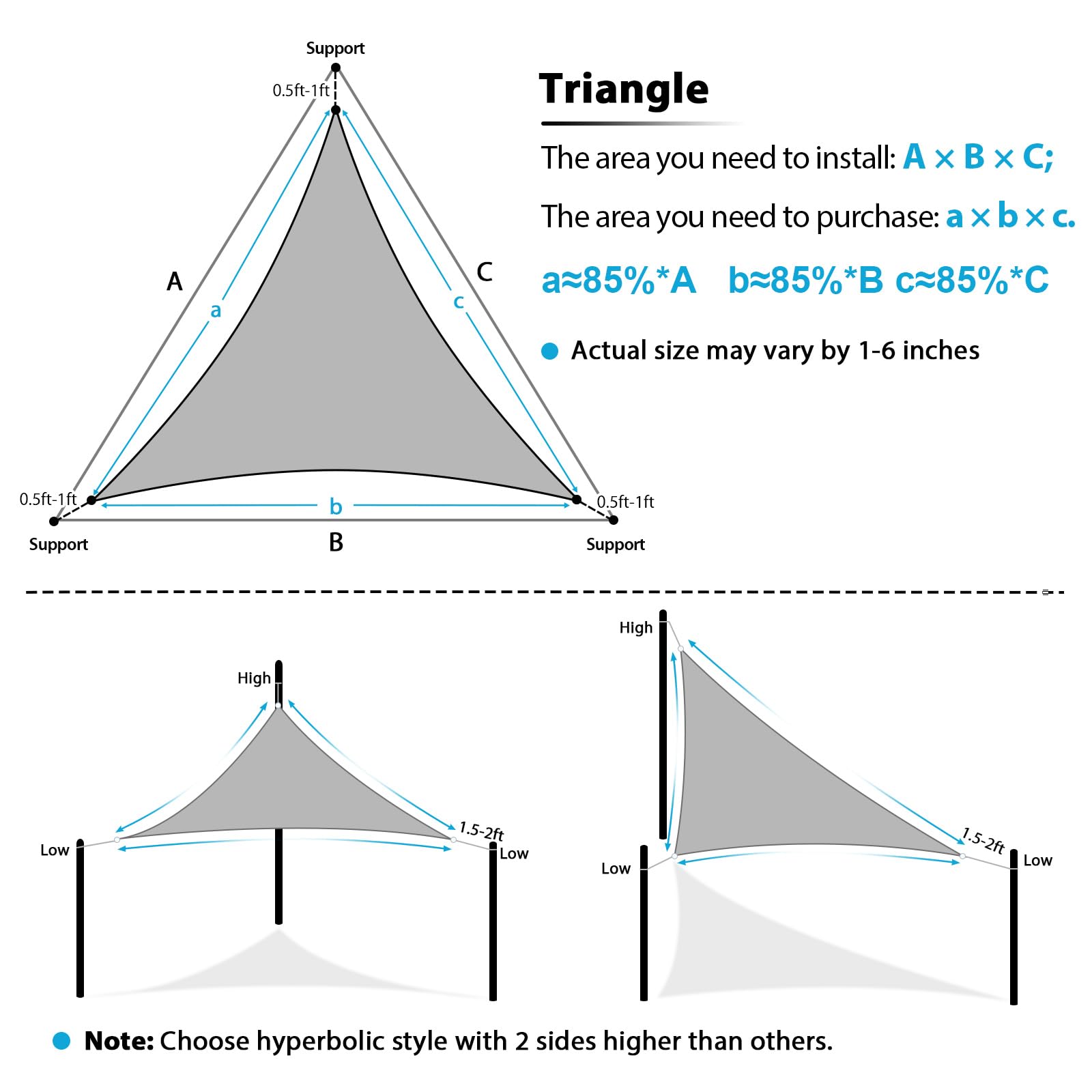 【Amagenix Service】 Jedes Sonnensegel wird mit 3 Sonnensegelseilen geliefert. Warnhinweise Sicher installieren, um ein Durchhängen oder Verschieben bei Wind zu verhindern. 1,5-0,6 m zwischen dem Installationspunkt und den D-Ringen der Sonnensegel. Sonnensegel Dreieck Amagenix Sonnensegel, Gebogen, Für Außenbereich, Terrasse, 61 X Sonnensegel Dreieckig Produktbeschreibungen Unsere Amagenix Sonnensegel halten nachweislich stark bei Wind, Sonne und Regen stand und bieten gleichzeitig kühlen Schatten und 95 % UV-Blockierung sowie senken die Umgebungstemperatur. Weit verbreitet über Terrasse, Rasen, Garten, Pool, Teich, Deck, Hinterhof, Eingang, Park, Carport, Pergola, Sandkasten, Auffahrt, Gehweg oder anderen Außenbereich. (Bitte entfernen Sie das Sonnensegel bei schweren Wetterbedingungen). Neben der großen Auswahl an hochwertigen Sonnensegeln für den adäquaten Schutz vor der Sonne, bekommen Sie bei auch erstklassiges Zubehör für Sonnenschutz zu bewährt fairen Preisen Wenn das gebogene Sonnensegel nicht zu Ihrer spezifischen Anwendung passt, können Sie auch unsere Sonnensegel mit geraden Kanten in Betracht ziehen, um Ihre Bedürfnisse zu erfüllen. Das Sonnensegel von Amagenix ist eine stilvolle und effektive Schattenlösung, die sich perfekt für Garten, Terrasse, Pool, Hinterhof oder andere Außenbereiche eignet Die Installation ist einfach mit einem entsprechenden Amagenix Hardware-Installationskit. Aber um eine bessere Produktnutzungserfahrung zu erhalten, empfehlen wir Ihnen, nach Sonnensegel-Hardware B08SJZ5K4J zu suchen. Sorgen Sie für eine ordnungsgemäße Drainage, um WasseransammHalten Sie den Bereich darunter frei von Hindernissen. Um eine bessere Spannung zu gewährleisten, empfehlen wir die Verwendung von Sonnensegel-Hardware aus dem Amagenix Store für die Installation. Es wird empfohlen, einen Abstand von 1 zu lassen. 【Gebogenes Sonnensegel】 Die Kanten des Terrassen-Sonnenschutzes sind gebogen, wodurch sich Regenwasser auf dem Segel ansammelt und die Lebensdauer des Sonnensegels verlängert. Amagenix Sonnensegel, dunkelgrau, rechteckig, für den