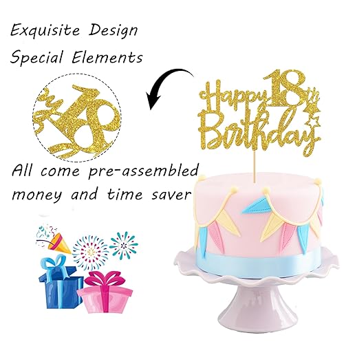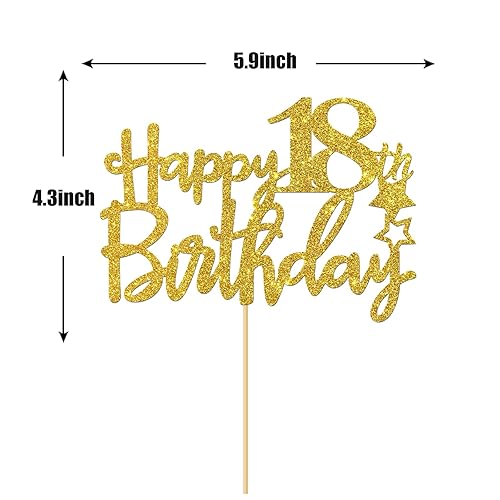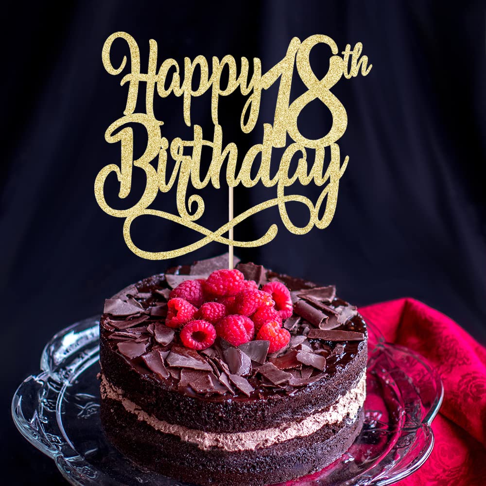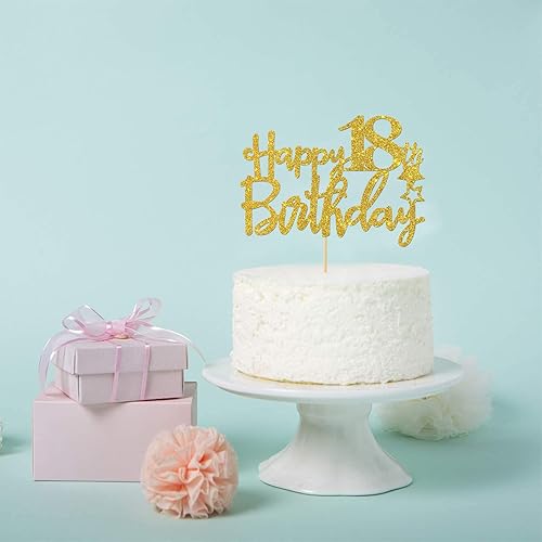 Qertesl Goldfarbener Glitzer-Kuchenaufsatz Zum 18. Geburtstag, Cheers To 18 Years, Happy 18th Birthday, Kuchenaufsatz Zum 18. Jahrestag, Männer Und Frauen, 18 Jahre, Happy Birthday-Party-Dekoration