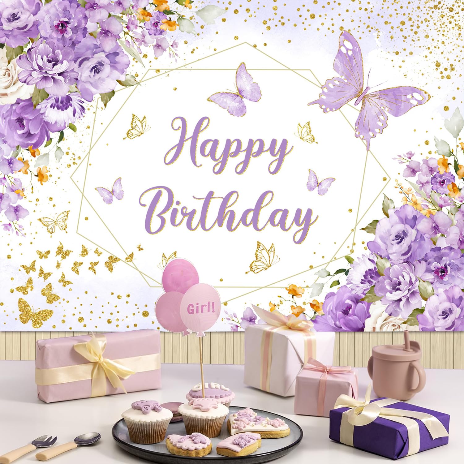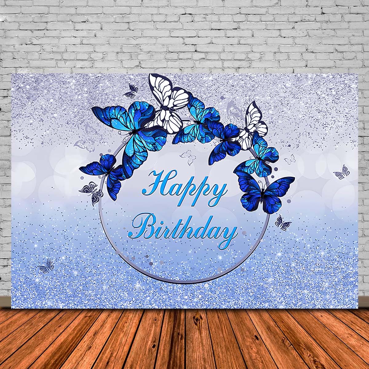 Ayayiya Schmetterling Happy Birthday Hintergrund Königsblau Floral Geburtstag Dekorationen Fotografie Hintergrund Frauen Blau Blumen Glitzer Punkte Geburtstagswünsche Party Banner Supplies Photo Booth