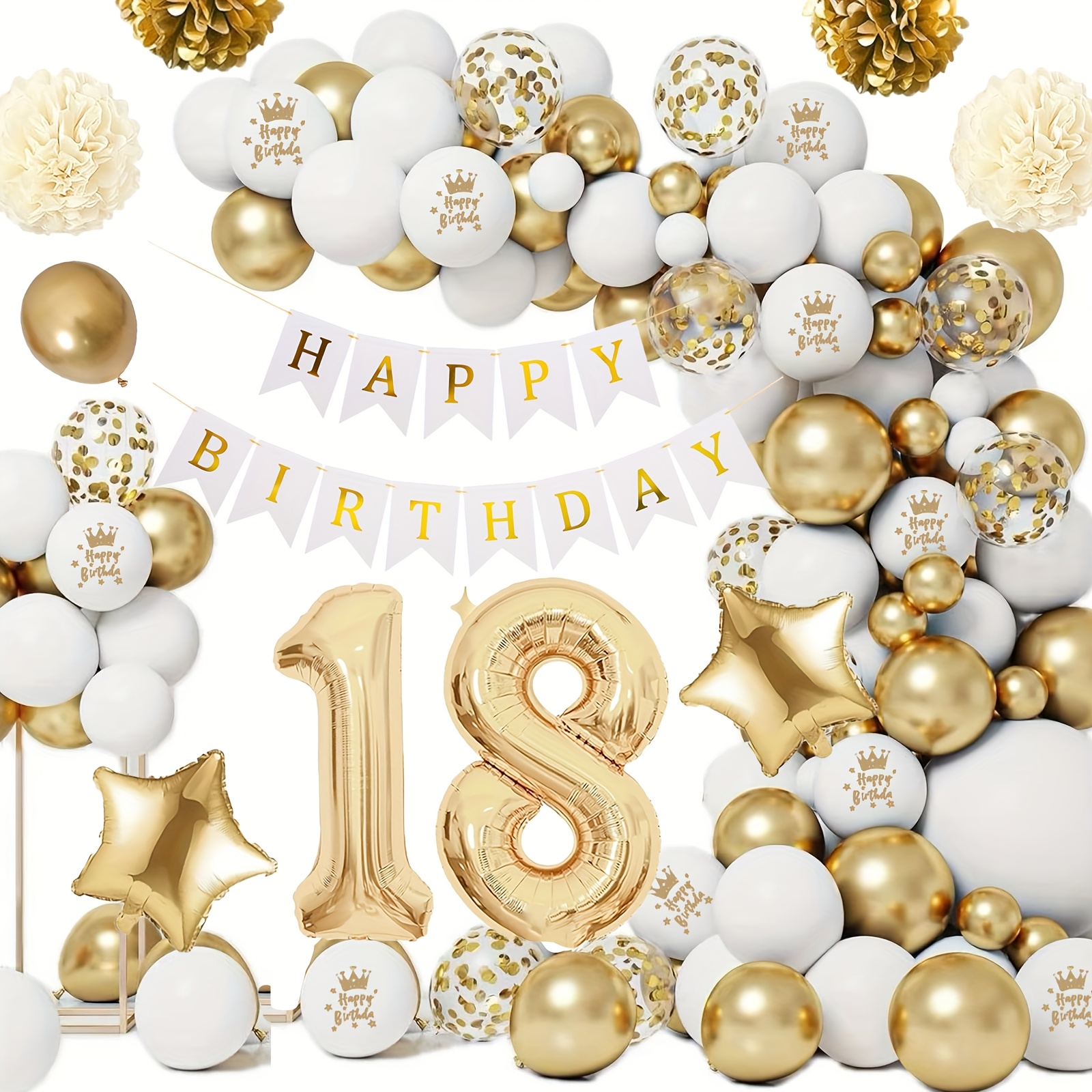 Goldene Dekoration Zum 18. Geburtstag Für Mädchen, Schleife Und Tiara