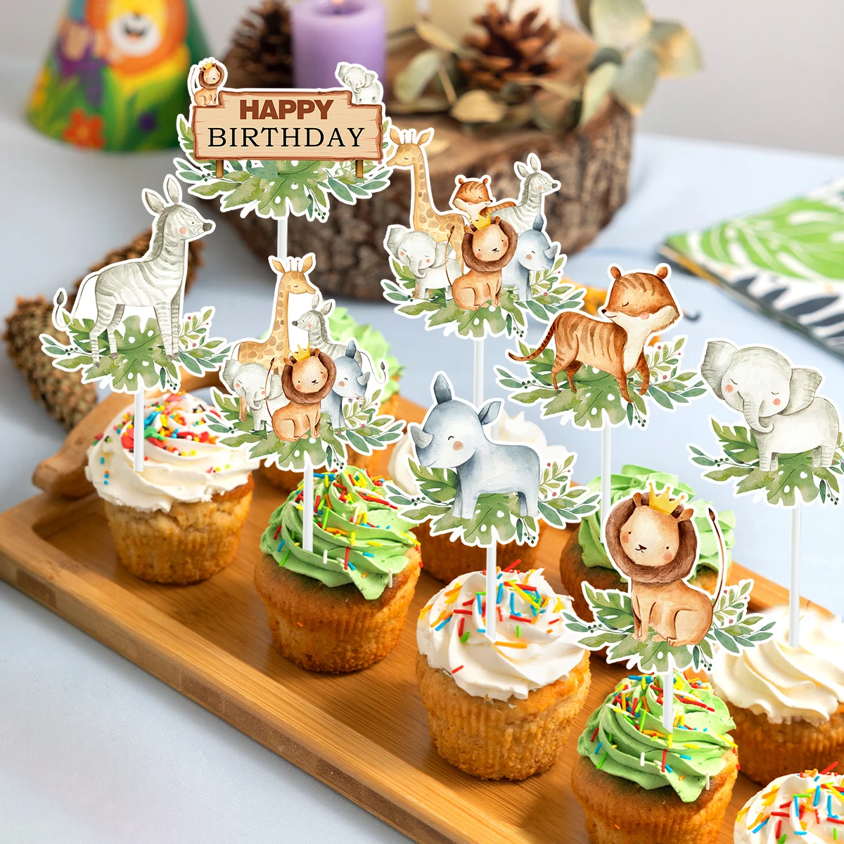 Safari Deko Geburtstag OSDUE Tortendeko Waldtiere 12-teilig - Für