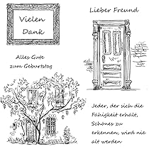 ESHOWEE Silikonstempel Sprüche Deutsch Set, 6 Blätter Stempel Silikon So können Sie verschiedene Stempel silikon., 2., WuLi77 scrapbooking silikonstempel stempel buchstaben., 3., Silikonstempel mit schönen, zahlreichen Motiven - Buchstaben, Zahlen, Text, Schrift, Verzierungen, Schnörkel, Rahmen, Einladungskarten, Geburtstag, Happy Birthday, Liebe, Herz, Heirat, Tiere, Einladung, Feier, Wünsche, Alltag, u., v., m., 4., Clear Stamps zur Verwendung mit Stempelkissen und Acryl Stempelblock (nicht im Lieferumfang). Weiche und flexible Textur, gute Wahl für Heimwerker. 11,5 x 15 cmPaket beinhaltet:1 x Clear Stamp (Keine Kleinverpackung), 1., Wir haben verschiedene Arten von Stempel ,Willkommen bei der Suche WuLi77 silikonstempel oder klicken Sie auf WuLi77 neben dem Titel. Wiederverwendbare und haltbare freundliche Klarsichtstempel. Schritt 3: Stempeln Sie fest auf Ihr Papier. Perfekt für Weihnachtskarten und Scrapbooking sowie Geschenkanhänger. Gewünschte Motive auf einen Stempelblock legen, den Block in Tusche drücken und Ihre Karten oder Stoffe mit verschönern., 5., stampin up silikonstempel silikon stempel clear stamp stempel set Honga Silikon Stepel Sprüche Deutsch Silikonstepel Clear Staps... Silikon Stempel Happy Birthday Party Wein Champagner Flasche Clear Stamps Für Kartenherstellung Dekoration DIY Scrapbooking Cheer Words Silikon Transparent Siegel Stempel Für Prägung Album Decor Craft Stempel Geburtstag Spezifikationen:Gebrauch: DIY Notizbuch, Karte, Einladungskarte und so weiter., Material: SilikonAbmessungen: ca.