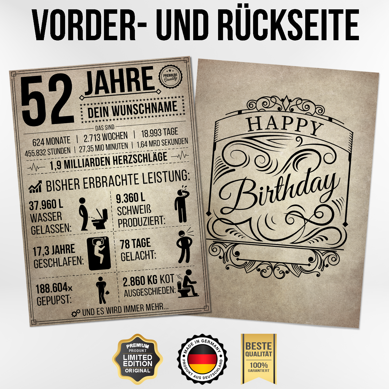 Es ist sehr einfach, das Wichtigste ist, dass Sie effektiv Toten bei der Ankunft vermeiden., Problemlose Rückerstattungsgarantie. Größere Größe von 14 x 12 cm. So happy I am 52 today = shit!, Ich bin heute 52! Hübscher und funkelnder Tortenaufsatz zum 52., Geburtstag für Damen und Herren, Gold und Schwarz, lustiges Partyzubehör zum 52., Geburtstag – Gute Erinnerungen machen! Eine amüsante Art zu sagen, dass Sie eigentlich kein Sh*T gegeben haben, um jedes Jahr älter zu werden Shi* I am Fifty One Today - Lit way to joke your age and speak out you actually don't give a sh*t on age of 52 ., ., ., We grow weder besser noch schlechter, wenn wir alt werden, sondern mehr wie wir selbst. Geeignet für 20,3 cm große und andere größere Kuchen. Geburtstag ist ein besonderer Meilenstein – mitten im Leben, voller Erfahrungen und neuer Träume. Hier findest du herzliche, lustige, kurze und inspirierende Sprüche, perfekt für Männer, Frauen, Freunde und Familie Alles Gute zum 52. Geburtstag ~ Gästebuch: Deko zur Feier vom 52.Geburtstag für Mann oder Frau - 52 Jahre - Geschenk & Geburtstagsdeko - Buch für Glückwünsche und Fotos der Gäste: : Publishing, BetterBirthday: 9781696117470 Scherzen Sie Ihr eigenes Alter mit diesem einfachen, aber besonderen Kuchenaufsatz auf Ihrer oder ihrer 52., Geburtstagsparty. Lustige Happy 52nd Birthday Cake Topper für Männer und Frauen. 52. Geburtstag Bilder, Gästebuchbilder, GB Pics Das ist eine gute Möglichkeit, unseren Geburtstag zu feiern!, Lustige Kuchendekoration zum 50., Geburtstag, perfekte lustige Party-Dekoration für Männer und Frauen. 74 Lustige Sprüche zum 52. Geburtstag von Mann & Frau