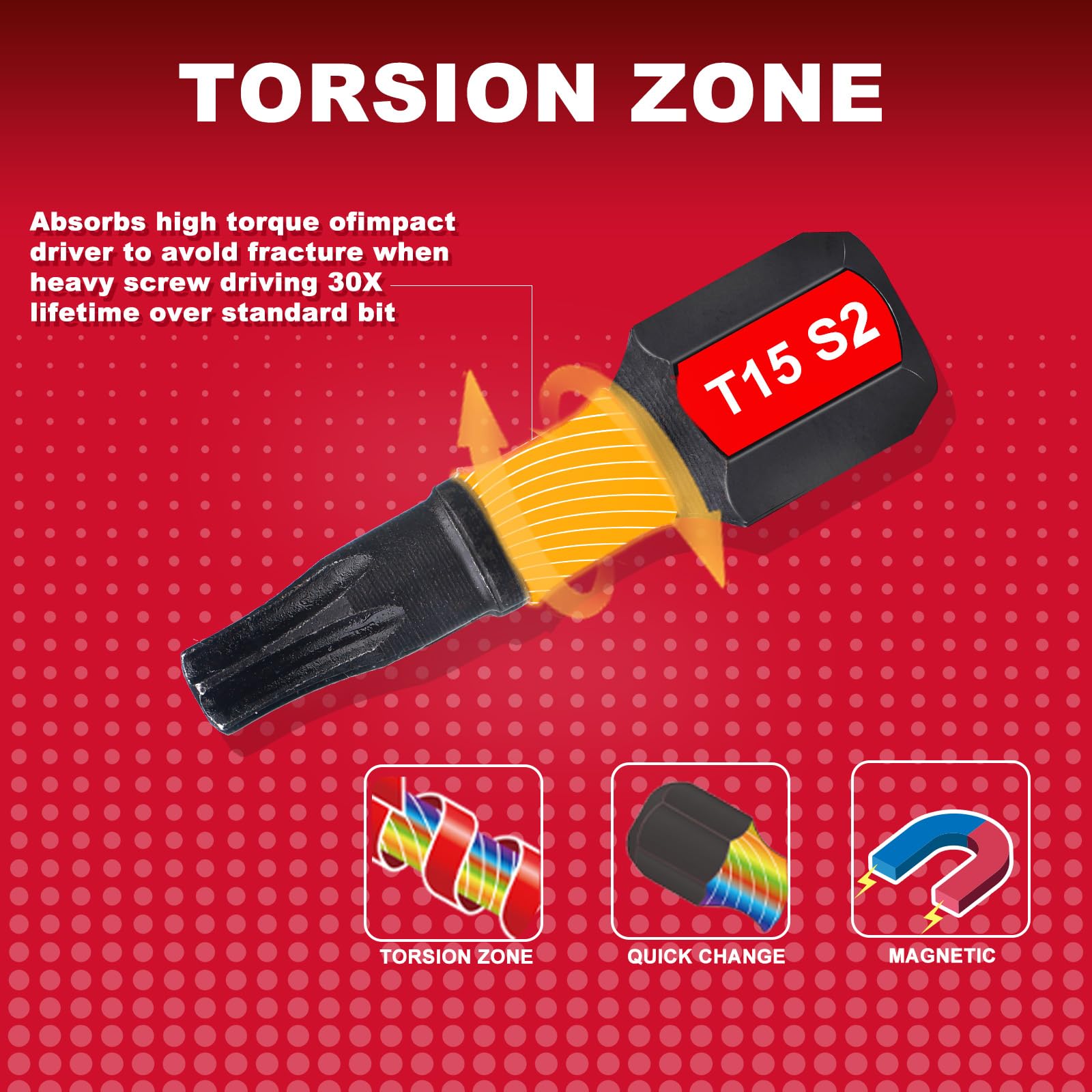 Geinxurn 10 Stück 5,1 Cm T15 Schlagfestes Magnetisches Schraubendreher Bit Set, #15 Torx Kopf Power Bits, S2 Stahl Stern Bits Mit Aufbewahrungs M Box