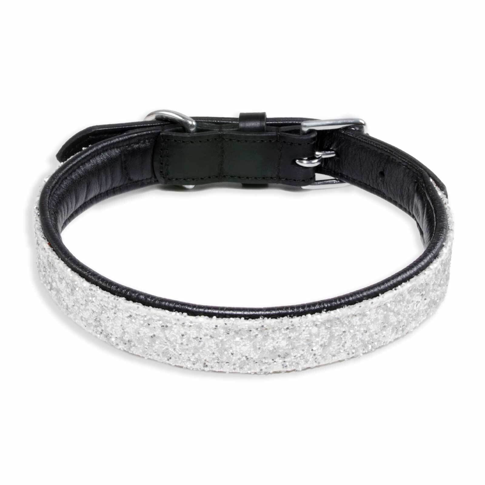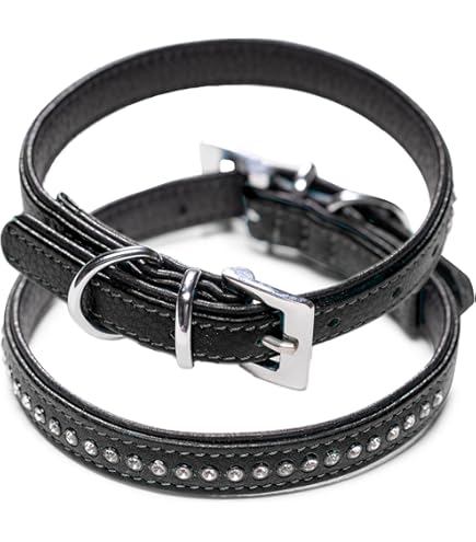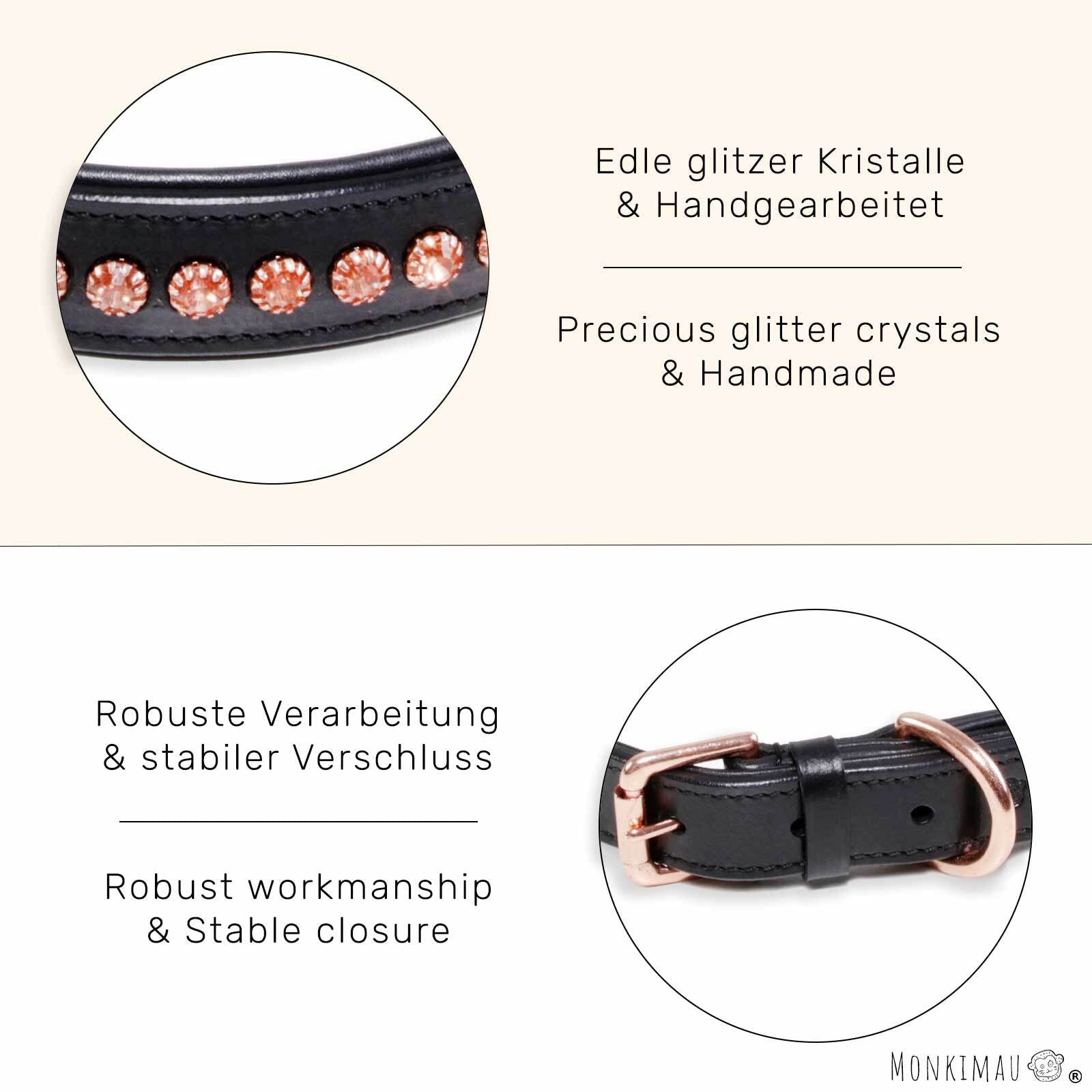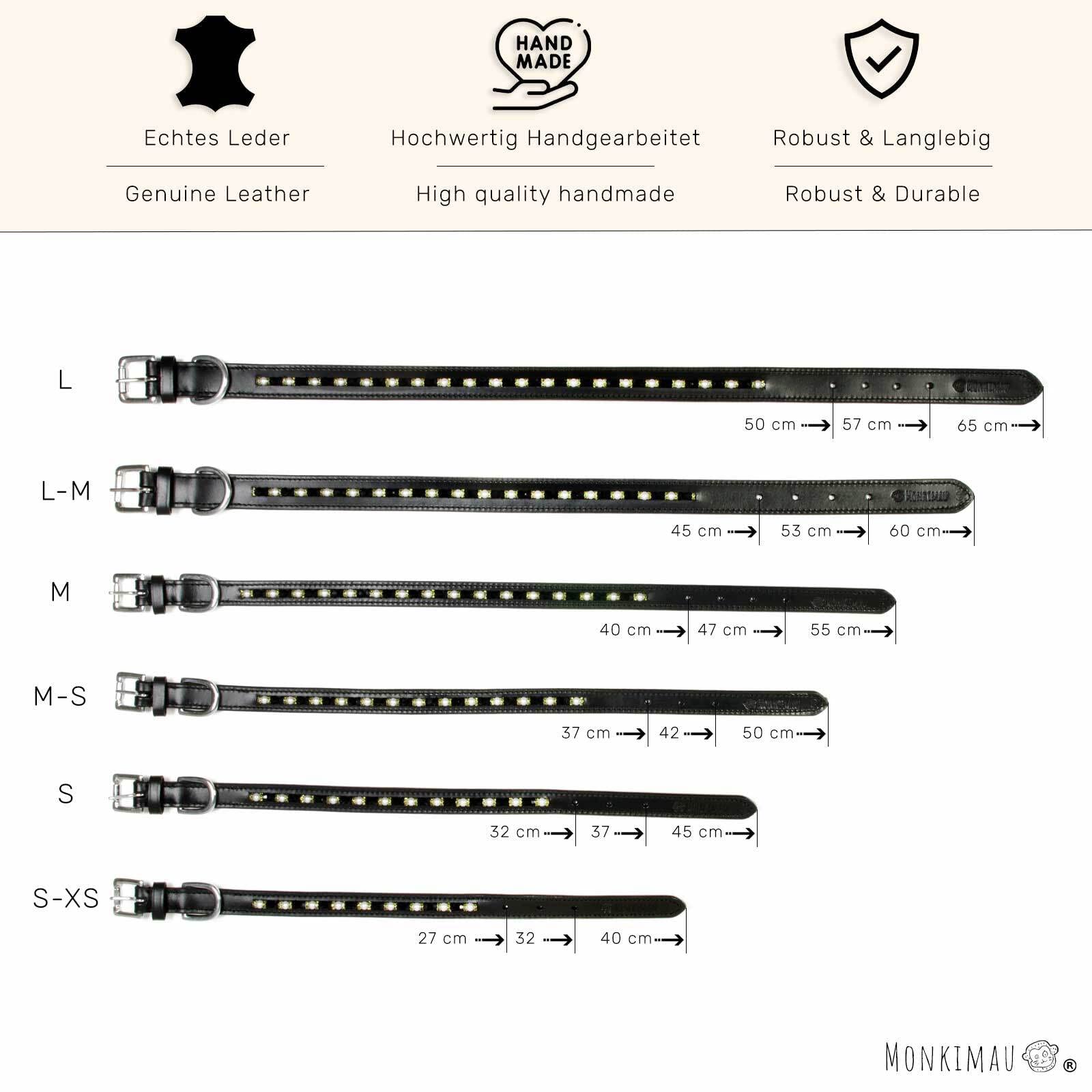 Monkimau Halsband Hund Echt Leder Hunde Halsbänder Schwarz Gepolstert Mit Kristallen Lederhalsband Verstellbar Dog Collar Hundehalsband (XL-L: 25mm X 70cm
