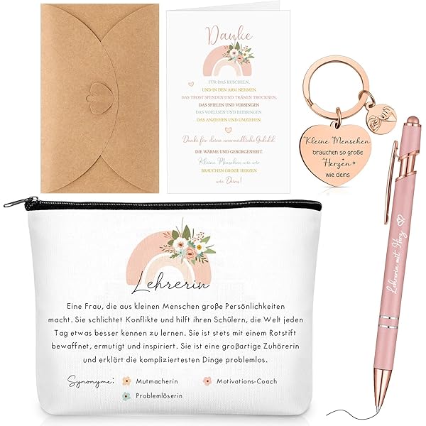 Die Kosmetiktasche im Set ist aus hochwertiger Polyester-Baumwolle gefertigt, um eine lange Lebensdauer zu gewährleisten; Der Schlüsselanhänger ist aus rostfreiem Stahl, hart und langlebig. Dies ist ein aufmerksames Geschenk zum Lehrertag, Lehrergeburtstag, zur Abschlussfeier, zur Heimkehr oder zur Ruhestandsfeier Durchdachte Geschenke: Unsere Geschenke zum Jahresende für Lehrer und Lehrerinnen sind mit einem lehrerbezogenen Text graviert. Der Schlüsselanhänger für Lehrer ist schön und stilvoll und die Kosmetiktasche kann zur Aufbewahrung von Kosmetika, Schreibwaren oder anderen kleinen Gegenständen für den täglichen Bedarf verwendet werden und bietet Lehrern praktischen Stauraum. Geschenke zur Anerkennung von Lehrern drücken Ihren Respekt und Ihre Dankbarkeit für Ihre Lehrer aus. Aufgrund unterschiedlicher Bildschirmdarstellungen kann die Farbe leicht abweichen. Verbeamtung als Lehrer: Der Weg erklärt Das Kindermädchen Geschenk Für Erzieherin Abschied Xuniea Lehrer-Geschenkset - Kosmetiktasche, Schlüsselanhänger & Dankeskarte (Abschied/Geburtstag) Geschenke Für Erzieherinnen Danke Kindergarten Abschied Die Dankeskarte und der Umschlag bestehen aus hochwertigem Papier Vielfältige Einsatzmöglichkeiten: Dieses Dankeschön Geschenk für Lehrerin eignet sich für verschiedene Anlässe, sei es der Geburtstag des Lehrers, die Abschlussfeier, die Schulfeier, die Heimkehrfeier, der Lehrertag oder andere Feste Spezifikationen: Material: Polyester-Baumwolle, Edelstahl Farbe: wie in der Abbildung gezeigt Abmessungen: Kosmetiktasche: 23 x 16 x 5 cm Schlüsselanhänger: 3 cm Durchmesser Das Paket beinhaltet: 1 x Make-up-Tasche 1 x Lehrer-Schlüsselanhänger Bemerkungen: Bitte berücksichtigen Sie leichte Messfehler aufgrund manueller Messung. Auffällige Farben und Design: Dieses Geschenkset für Lehrer verfügt über wunderschöne Blumendrucke und Dankesbotschaften; In die Kosmetiktasche ist die Aufschrift [Une Super Maîtresse Dure à trouver DiRRicile à quitter Impossible à oublier] eingraviert Geschenke für Kitaleitung Diese Geschenke haben die richtige Größe, damit sie leicht zu tragen und zu verwenden sind und bieten Lehrern eine praktische und wunderbare Erfahrung Ich als Mama kann nur sagen, wie wichtig ich diese Arbeit finde und wie sehr ich das Engagement der Erzieher und Erzieherinnen wertschätze.