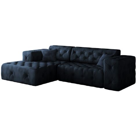 Freistehendes Ecksofa, Stark Gesteppt, Weich, Elegant LUX Stoff Whisper Links Blau