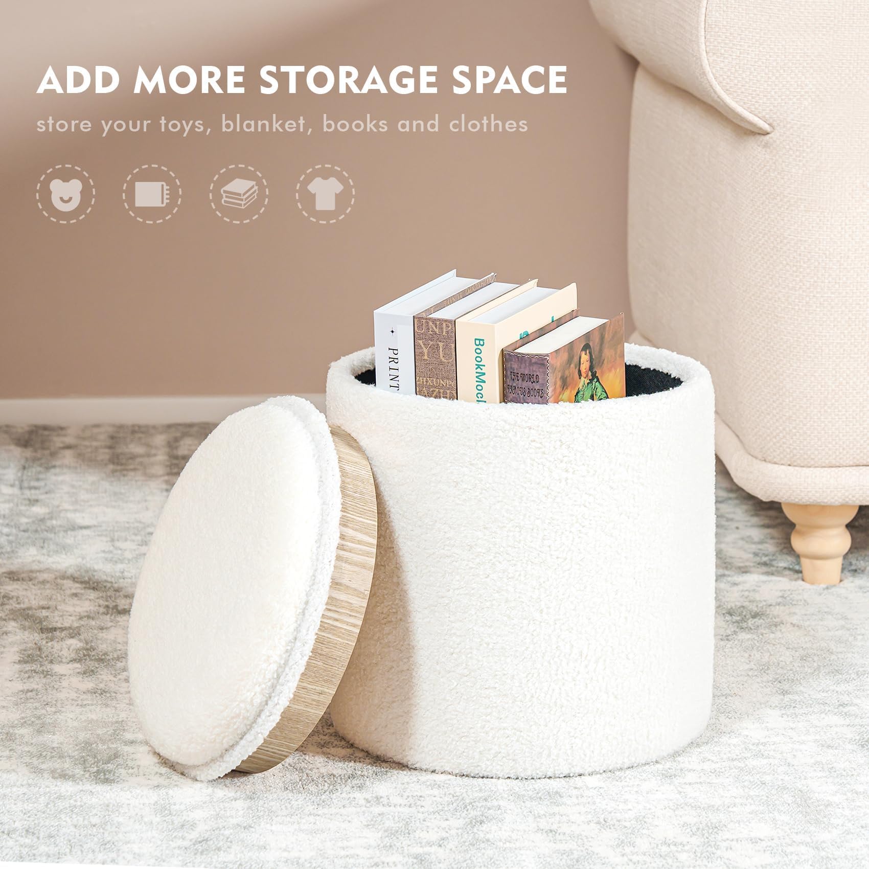 Runr Ottomane Mit Stauraum, Morner Getufteter Couchtisch Mit Knöpfen, Anhebbarer Ckel, Gepolsterter Fußhocker Für Wohnzimmer Und Schlafzimmer, 35