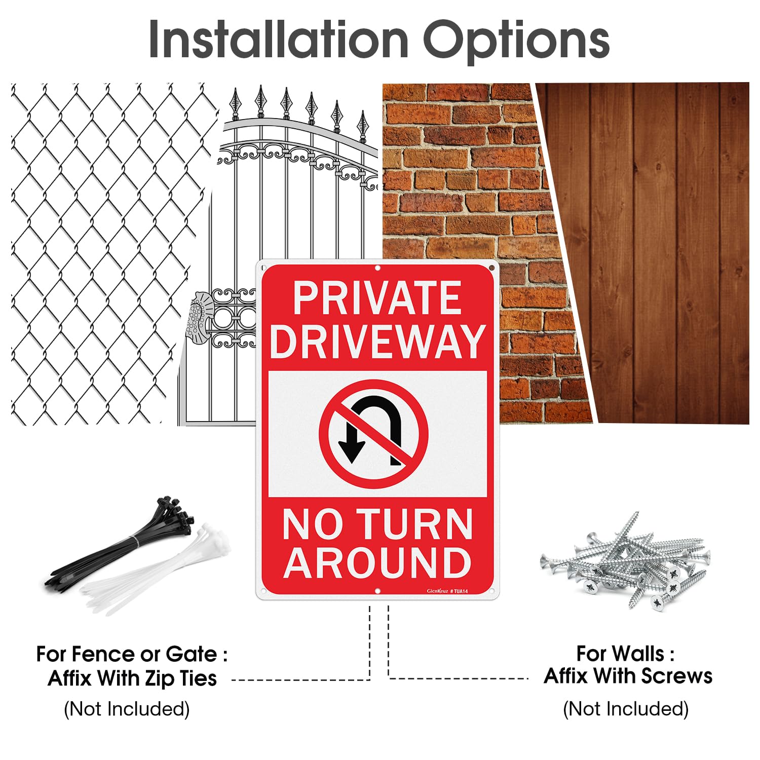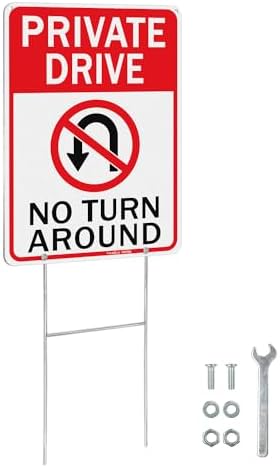 GicnKeuz Großes Schild Mit Aufschrift "No Turn Around Driveway", 35,6 X 25,4 Cm, Reflektierendes Aluminium, Lichtbeständig/wasserdicht, Für Den Innen- Und Außenbereich (2er-Pack
