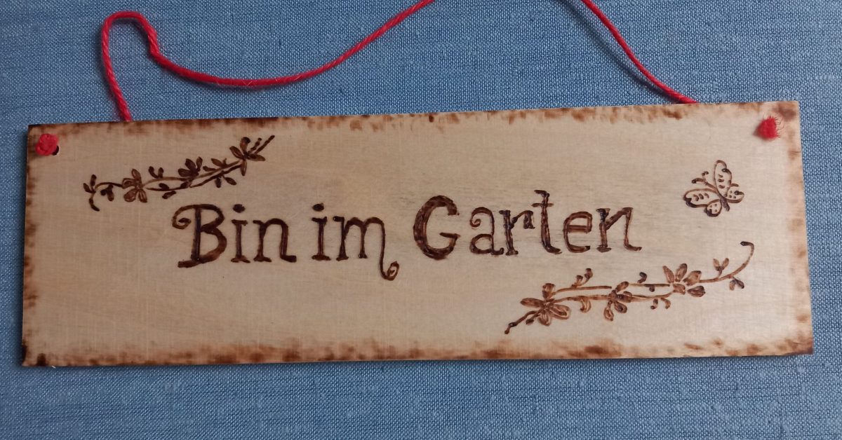 Retroschld / Vntage-Schld Bn m Garten mt den Hummeln bummeln... Auf dem Bild ist ein Muster zu sehen. Gießform. Blechschild Bin im Garten - Haus - Garten - Antik und Kultiges Klaus Hobbyfun Katalog Gießform - Bilderrahmen, Eckig + Oval Hobbyfun Deutschland Emailschild "Bin im Garten" 15 x 10 cm - GENUSSWERKSTATT HERISAU