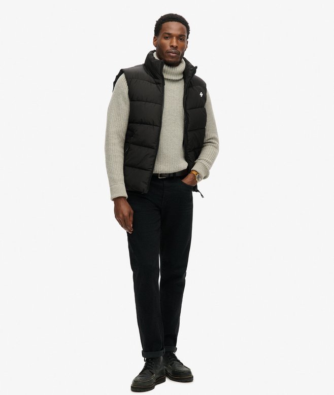 Superdry Mens Sports Puffer Gilet Down Vest, Deep Navy, XS : SuperDry
