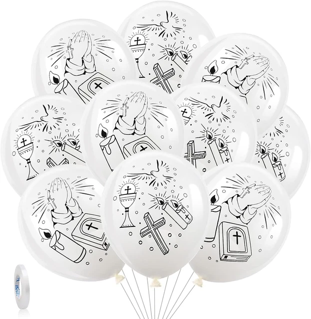 Sie eignen sich ideal für die Dekoration von Tischen, Wänden oder als Blickfang im Raum. Für Jungen und Mädchen: Das Set enthält neutrale weiße Ballons, die sowohl für Jungen als auch Mädchen geeignet sind. Dekorieren Sie Ihren Festsaal oder Garten auf stilvolle Weise. Produktbeschreibungen Beschreibung:Feiern Sie den besonderen Tag der Kommunion oder Taufe Ihres Kindes mit dem 10 Kommunion Luftballon Set. Hochwertige Qualität: Die Luftballons sind aus robustem Material gefertigt und halten lange. Die Luftballons sind perfekt für Jungen und Mädchen geeignet und verleihen Ihrer Feier eine festliche Atmosphäre. Verleihen Sie Ihrer Feier eine besondere Note mit diesem Deko-Set. Folienballon zur Kommunion Kelch blau, Folienballon mit Helium Luftballon Konfirmation NEU Ballongrüße Kommunion Die Liebsten Glückwünsche, 3 Ballons - Luftballon-Grüße Besondere Taufe Deko Dieses Deko-Set enthält weiße Luftballons mit einem wunderschönen Fischmotiv und christlicher Kommunion-Deko. Lassen Sie den Tag zu einem unvergesslichen Erlebnis werden und dekorieren Sie stilvoll mit dem 10 Kommunion Luftballon Set., Warnhinweise Nicht zutreffend Fisch zu Kommunion Konfirmation Taufe Firmung für Ballonlichter Das Set besteht aus 10 Ballons, die mit einem Kreuz und Fischmotiv verziert sind. Bluelves Luftballons Kommunion, 30 Ballons Konfirmation, Fisch Luftballon Set mit Fischmotiv und Blätterkranz, Deko Taufe als Deko für Weihnachten Taufe Kommunion Konfirmation