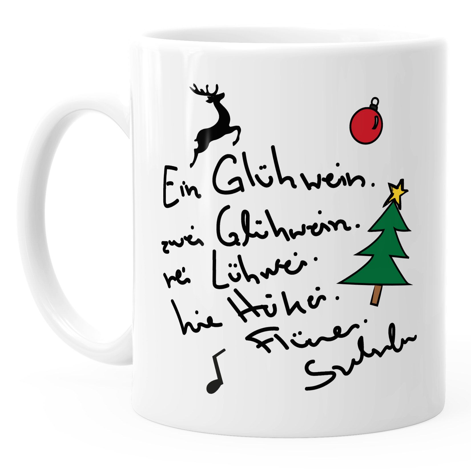 Tasse Mt Spruch "En Glühwen, Swe Glühweh, Reh Lühwe, He Hühe
