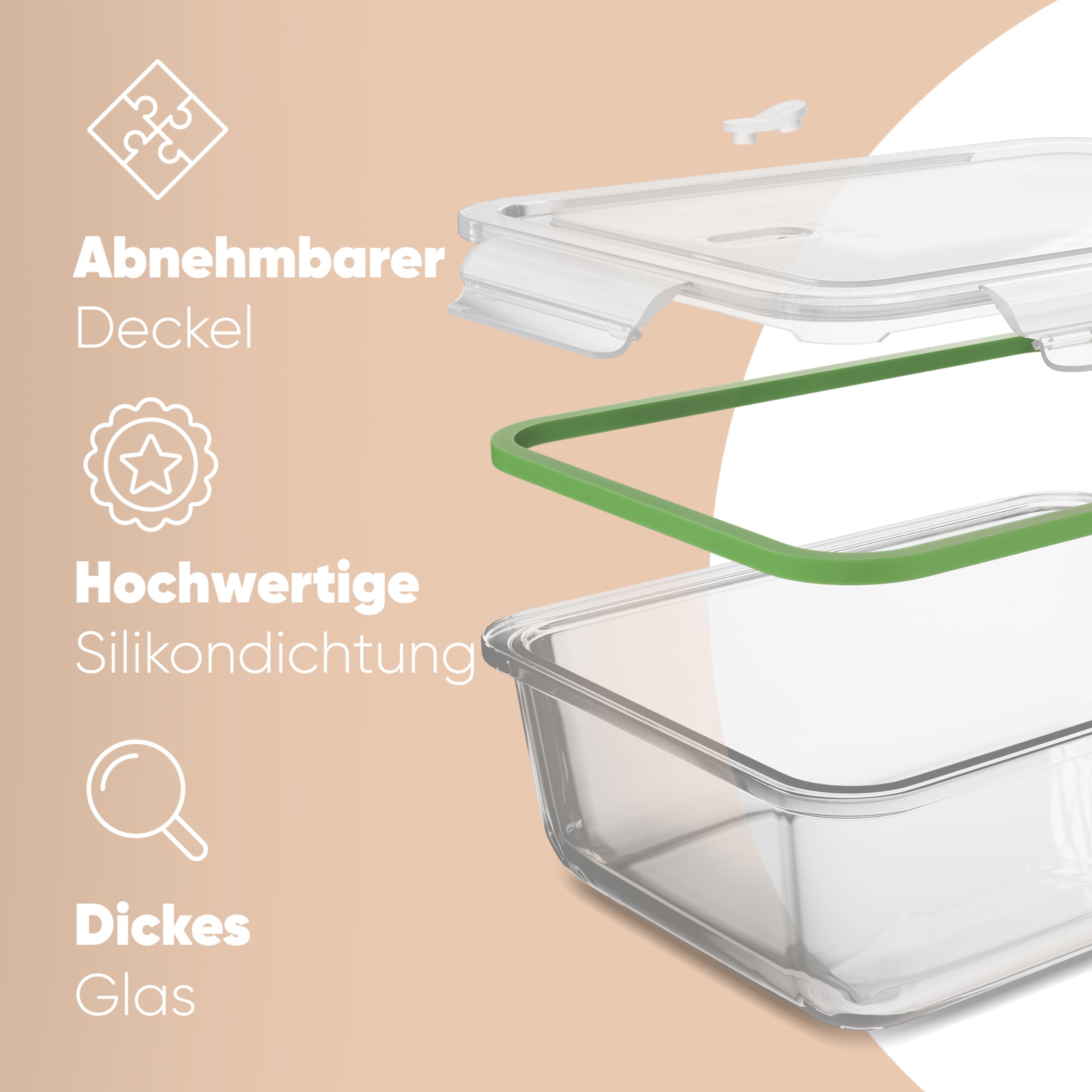 7er Set Frischhaltedosen mit Deckel aus robustem Glas in 4 praktischen Größen, ideal als Vorratsdosen Set, Glasbehälter mit Deckel, Kühlschrank Organizer, Camping Geschirr, Vorratsgläser mit Deckel/Vorratsdosen mit Deckel, Brotdose, Lunchbox oder einfach als Gefrierdosen So können gesamte Mahlzeiten für lange Ausflüge ins Grüne eingepackt und transportiert werden und die Auswahl der besten Gerichte für Sie und Ihre Familie ist garantiert. CLASSBACH C-FHDM 4021 G 3er Set Glas-Meal Prep Dosen Classbach 7er Set Glas-Frischhaltedosen C-FHD 4010 G Classbach C-FHD 4010 G, Set, Rechteckig, Transparent, Glas, -40 - 400 °C, 1040 ml Classbach C-FHD 4010 G. Die Frischhaltedosen von classbach gibt es in verschiedenen Set-Ausführungen mit unterschiedlichen haushaltsgerechten Größen und Farben - so finden Sie immer die richtige Schale zum Aufbewahren und Servieren von Ihren Mahlzeiten. Menge pro Packung: 7 Stück(e) Sowohl der Deckel als auch die Silikonabdichtung können abgenommen werden, wodurch die Boxen noch einfacher zu reinigen sind. Die classbach Glas Boxen sind ein Must-Have für alle Haushalte und eignen sich ideal für eine geordnete und organisierte Küche bzw., als Küchen-Organizer. Schnelle Pasta mit Grünkohl und Lachs – Kaleidoscopic Kitchen relaxdays Lunchbox Meal Prep Boxen 1 Fach 24er Set, Kunststoff, Snackbox Unsere Behälter sind zusätzlich BPA-frei und enthalten keine giftigen Stoffe. Frischhaltedosen Glas Classbach 3er Set Glas-Frischhaltedosen C-FHD 4020 G Vorratsdosen Glas Mit Deckel Vielseitig einsetzbar Ob als klassischer Lebensmittelbehälter für Obst, Gemüse, Wurst, Käse, Fleisch, Saucen und vieles mehr oder als zuverlässige und auslaufsichere Lunchbox. Sie können somit bedenkenlos auch färbende Lebensmittel wie Tomatensauce einlagern, ohne Rückstände oder Flecken in den Frischhaltedosen befürchten zu müssen. Mahlzeiten einfach portionieren Mit den classbach Frischhaltedosen aus Glas können Sie einfach und hygienisch Ihre bereits vorgefertigten Speisen und Snacks individuell portionieren. Durch ein im Deckel integriertes, verschließbares Dampfventil werden Ihre Mahlzeiten schnell und gleichmäßig erwärmt. In den Dosen sind alle Lebensmittel absolut geruchssicher verwahrt. Sie können die Behälter sogar als Auflaufform benutzen und somit Lasagnen, Gratins und Aufläufe direkt in den Glas-Dosen zubereiten. Typ: Set, Formfaktor: Rechteckig, Produktfarbe: Transparent. Das Set der Glas-Frischhaltedosen eignet sich für jeden Bedarf in der Küche oder Unterwegs. Das gezielte Portionieren verhilft Ihnen zum Beispiel auch bei einer Diät, mit der Sie die tägliche Nahrungsaufnahme kontrollieren wollen. Qualität für den AlltagDie Frischhaltedosen von classbach® gibt es in verschiedenen Set-Ausführungen mit unterschiedlichen haushaltsgerechten Größen und Farben - so finden Sie immer die richtige Schale zum Aufbewahren und Servieren von Ihren Mahlzeiten. Aufbewahrung und Organisation: Die 7 Dosen sind platzsparend stapel- bzw. Arbeiten Sie tagsüber lange und haben unter der Woche keine Zeit, um gesund zu kochen? Bereiten Sie Ihre Lieblingsgerichte einfach am Wochenende vor, frieren Sie sie einzeln ein und sparen Sie nach Ihrer Schicht Zeit.