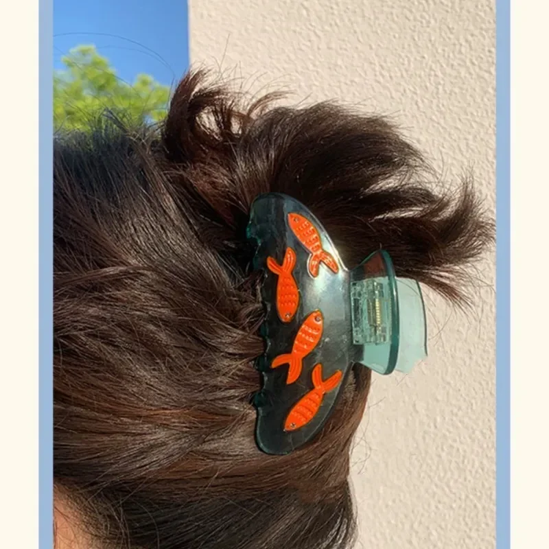 Haarklammer, Transparenter Goldfisch-Glas, Haarspange, Acetat