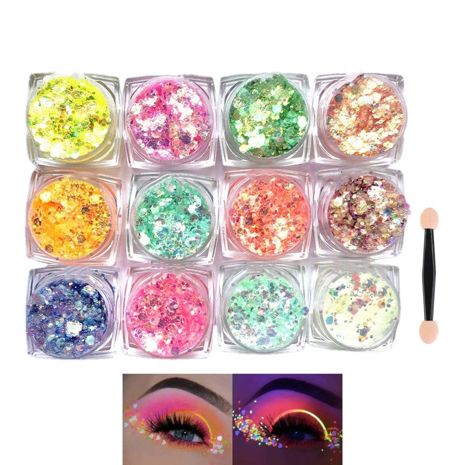 Cadimus Fluoreszierendes Glitzer,12 Farben Pailletten Gel,Festival