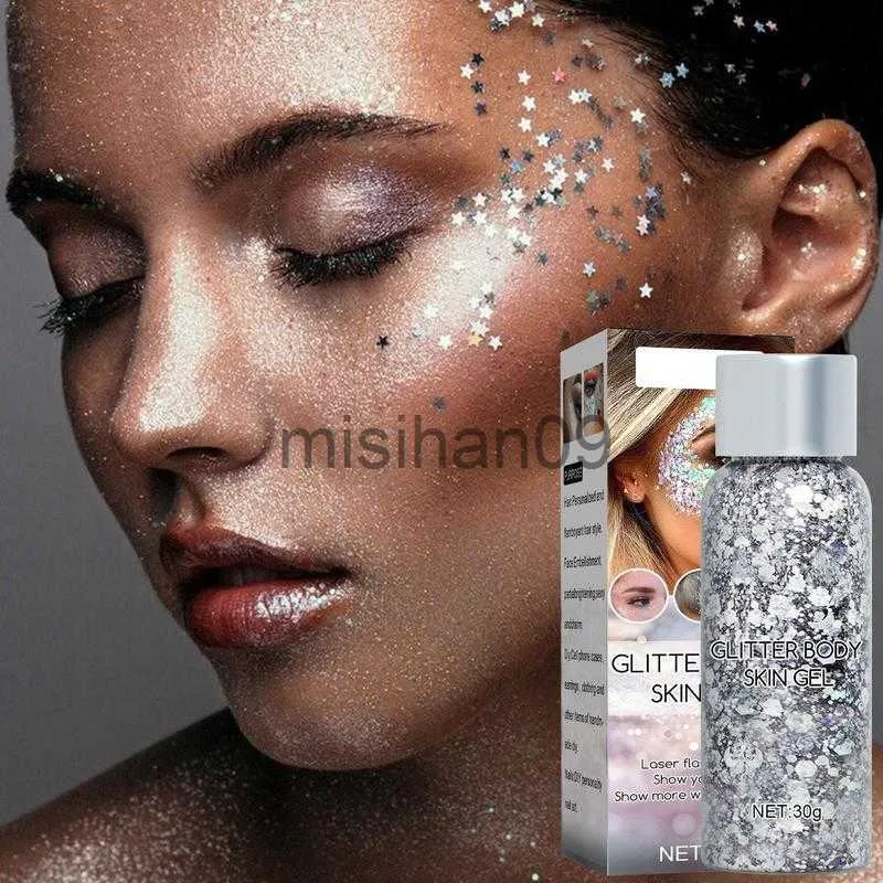 Glitzer Gesicht Gel, Mermaid Sequins Glitter Body Gel, Festival Glitzer Gesicht, Lidschatten Face Glitter Schminke Für Festival Musikfestivals Party Masquerade Körper Haare Lippen#Gold+Silber+Weiß