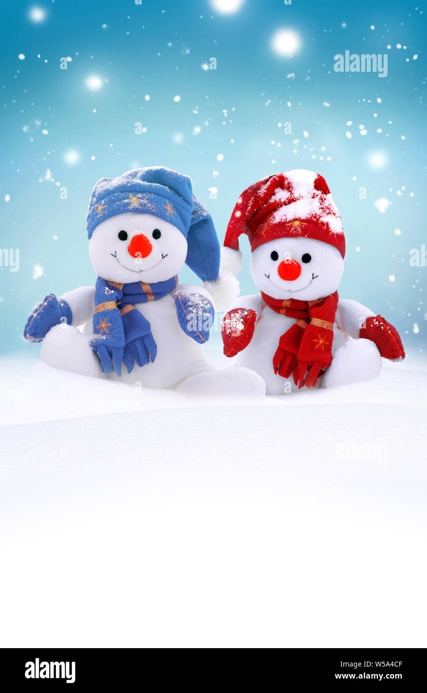 Weihnachts-Doppelkarte Mit Glitzer: Traditionelle Schneemänner In Wint