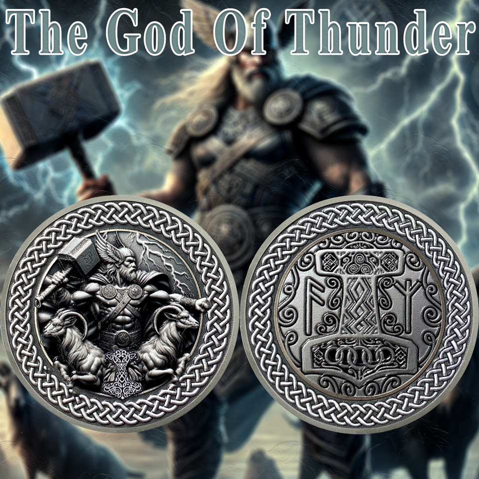 Thor Viking Norse God With Mjölnir And Runes Challenge Coin
