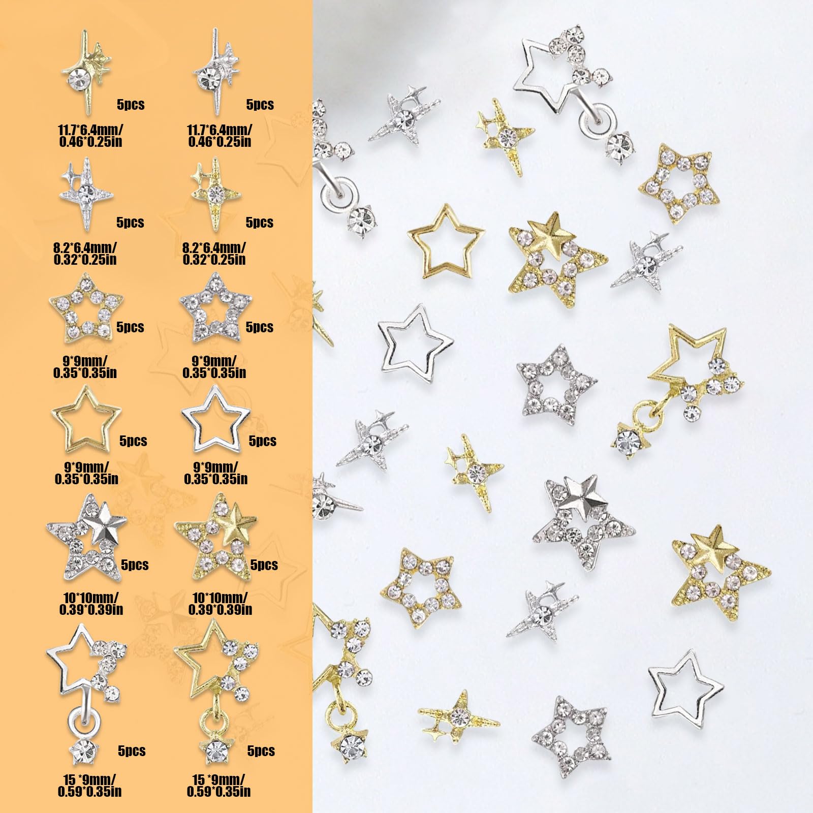 Charms Nägel Gold Silber Nagel Schmuck, 750 STK 3D Stern Nagelkunst Aufkleber Sterne Weite Anwendungen: 3D Stern Nagelanhänger können nicht nur für 3D-Nagelkunst verwendet werden,sondern können auch als Dekoration für Handyhüllen, Gitarren, Bücher, Grußkarten, Brieftaschen, Schuhe, Schmuckherstellung, Spiegel, DIY 【3D Star Nail Charms】Sie erhalten 2 Pack Stern-Nagelanhänger in verschiedenen Stilen und Farben, ausreichende Menge und reiche Stile können Ihre verschiedenen Bedürfnisse in DIY Nagelkunst oder andere handgemachte Projekte erfüllen. 【Material】Diese goldenen silbernen Stern 3d Nagelanhänger sind aus Legierung hergestellt. Von Schuhen bis zur Kleidung, von Sportgeräten bis zu Accessoires. Gold Silber Stern Schleifen Nail Charms, 2 Boxen Metall 【Cute Deisgn】Delicate gold silberne Sterne sind große Nagel Ornamente für erwachsene Frauen und junge Mädchen, Stile Mix-Form und Größe, es bietet verschiedene Kreation für Ihre 3D Acryl-Nagelkunstwerke. 【Weite Anwendungen】3D-Stern-Nagelanhänger können nicht nur für 3D-Nagelkunst verwendet werden, sondern auch für die Dekoration von Handyhüllen, Schuhen, Wanddekorationen, DIY-Kunsthandwerk, Schmuckherstellung oder andere verwendet werden.