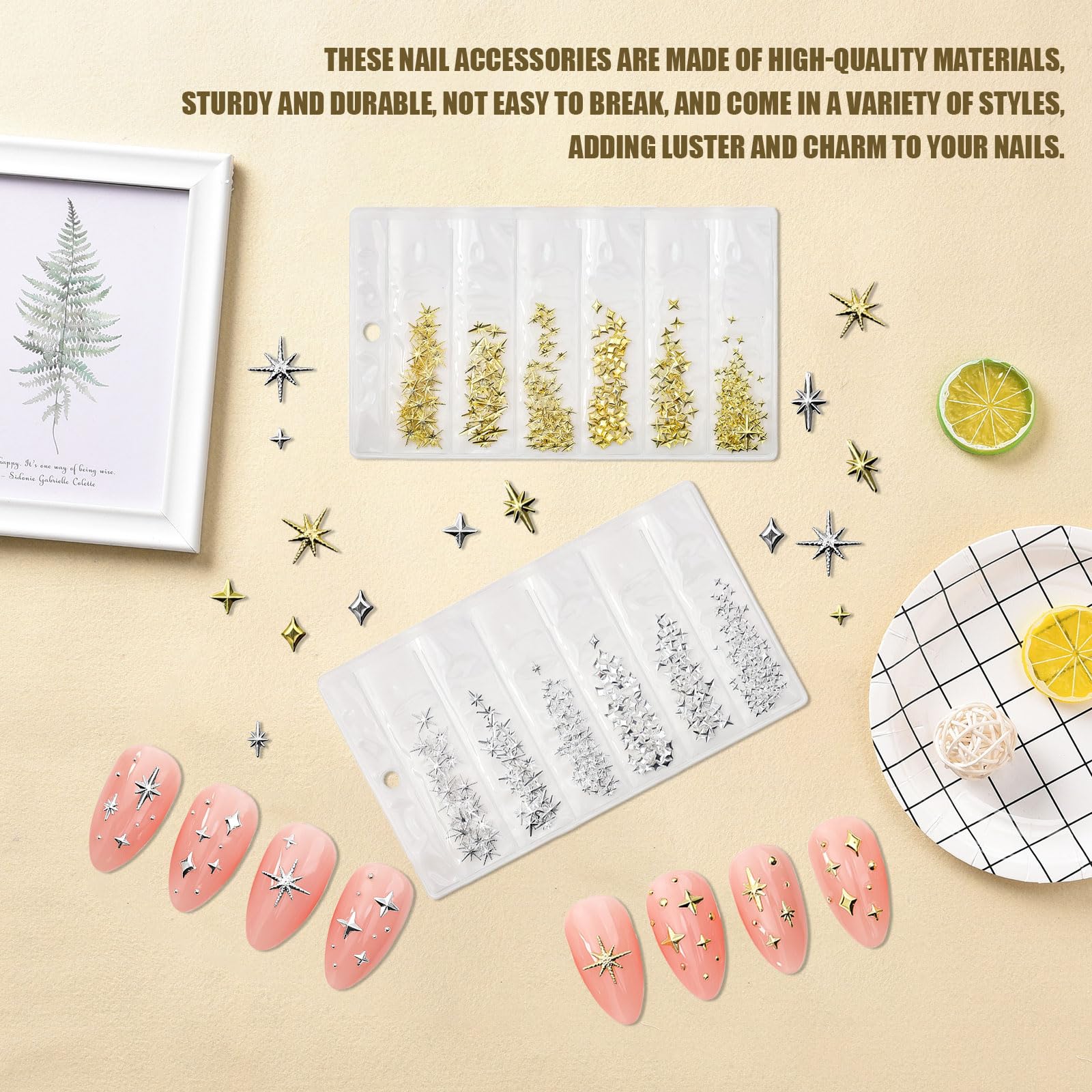 Gold Silber Nagel Schmuck, 750 STK 3D Stern Nagelkunst