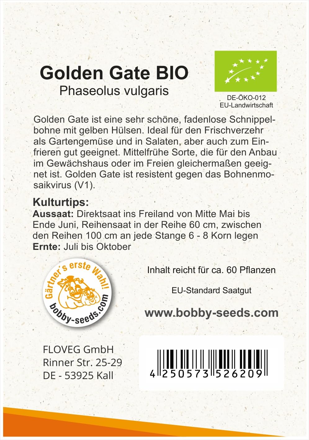 De Bolster Stangenbohne "Golden Gate", 50 G - Bloomling Österreich
