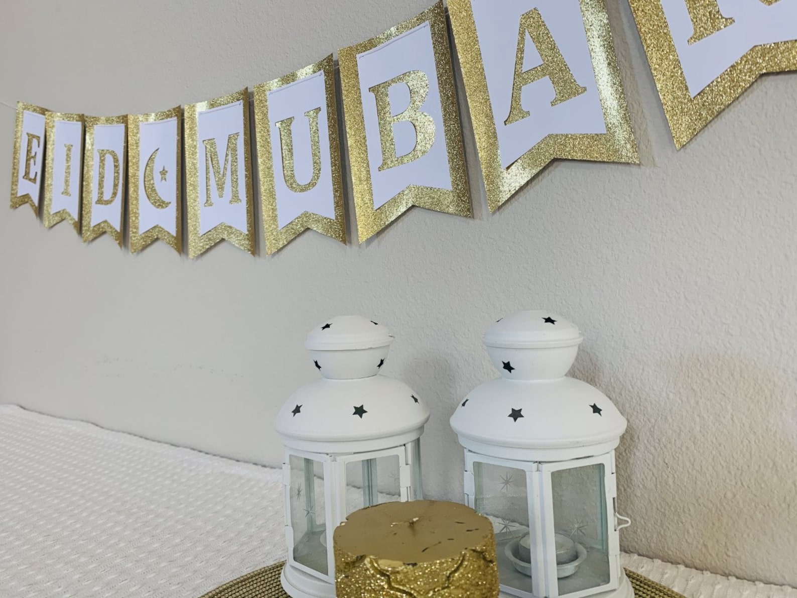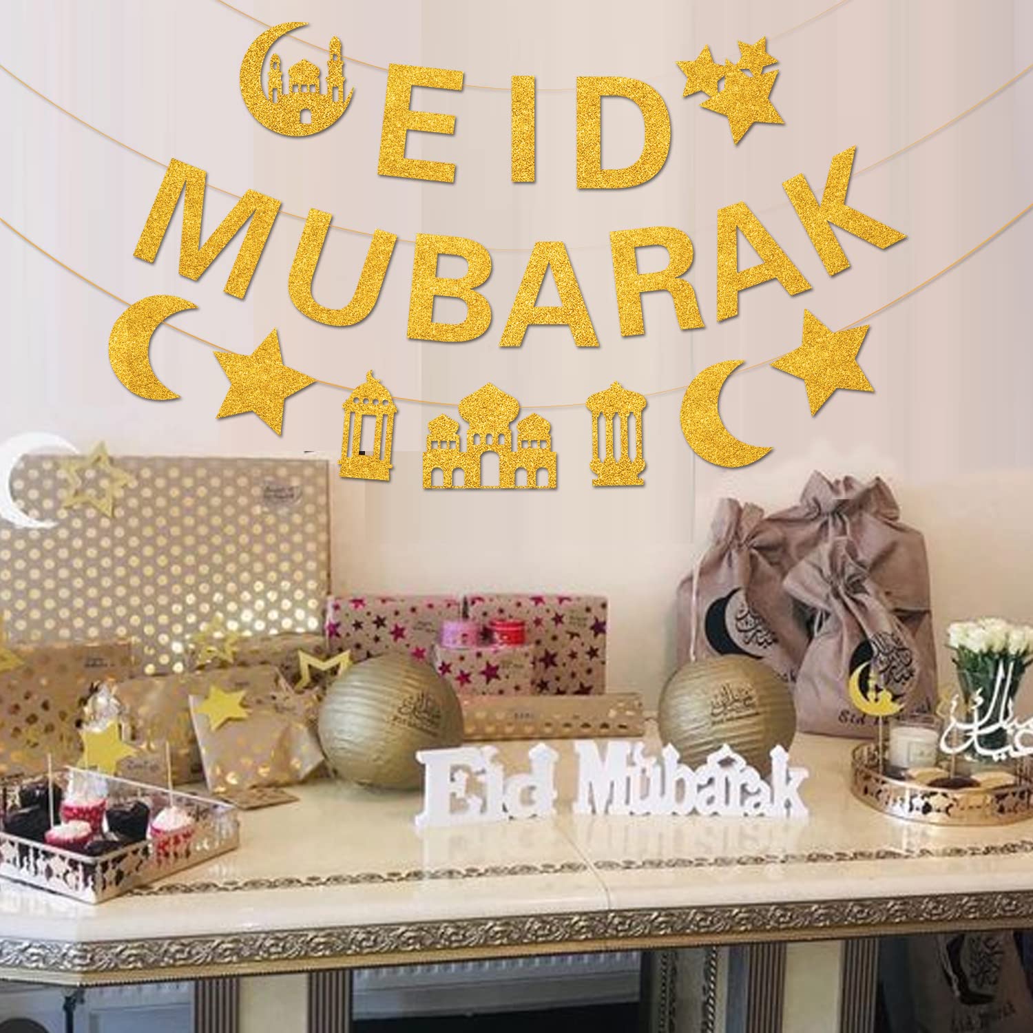 EID Banner Banner besteht aus 10 x A5 Karten (der Banner kann beliebig gelocht oder mit einer Klammer aufgehangen werden, das Bild ist lediglich ein Beispiel) Die Karten und das A4 Poster werden auf hochwertigem 300g Papier gedruckt, so dass der Banner auch nächstes Jahr eingesetzt werden kann Die Sterngirlande ist vormontiert. Lieferumfang: 1 x goldenes Eid Mubarak Banner und 1 x Sterngirlande. 6 m (2 Seile) und die Buchstaben sind hoch oder breit abhängig von den Buchstaben. Ramadan-Party-Dekorationen: Einzigartiges Schriftdesign und sternförmiges Design, volles Eid Mubarak-Gefühl. Schaffen Sie eine völlig warme Mubarak Party-Atmosphäre für Sie und fügen Sie Ihrer Mubarak Partydekoration ein wenig Glanz hinzu. Es ist ein Must-Have-Banner, um Ihre Ramadan-Party-Dekoration zu feiern, erhellen Sie Ihr Zuhause. Ramadan Liefert Eid Mubarak Folie Luftballons Ramadan Mubarak Banner Islamische Deko Goldene Deko 3x Gold Glitzer Stern Girlande 4m – Doppelseitig, 40 Fuß, Für Party & Graduierung Glitzer Girlande Umrah Mubarak Geschenk Glänzende goldene Eid Mubarak Festival Banner | Kostenlose Vektor Perfekte Größe: Die Eid-Mubarak-Banner haben eine Gesamtlänge von ca.