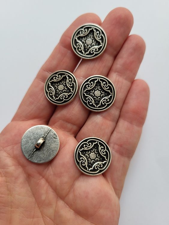 Trachtenknöpfe Metall Herz-Ornament groß Silber 10er/Pack Metallknöpfe kaufen! Wappen Knopf mit Öse Gold mk-227g Diese Knöpfe bestehen aus hochwertigem Metall und haben ein einzigartiges, antikes Design in Silber, das Ihren handgefertigten Projekten einen besonderen Charme verleiht. Egal, ob Sie Ihre alte Jacke aufpeppen oder ein neues DIY-Projekt starten möchten, unsere keltischen Knöpfe sind die perfekte Wahl. Einfache Anwendung: Mit einer praktischen Öse ausgestattet für einfache Befestigung. Perfekte Größe: Jeder Knopf hat einen Durchmesser von 25 mm, ideal für verschiedene Projekte. Traditionell und klassisch,- Second Hand Vintage. Metallknöpfe kaufen! Wappen Knopf mit Öse MK-507as Keltisches Design: Silberne Knöpfe mit kunstvollem keltischen Muster. Knöpfe Trachtenweste Goldgöre 5 Etall Knöpfe Weiß Gold It Perle It Öse Zu Annähen 25 Mantel Knöpfe