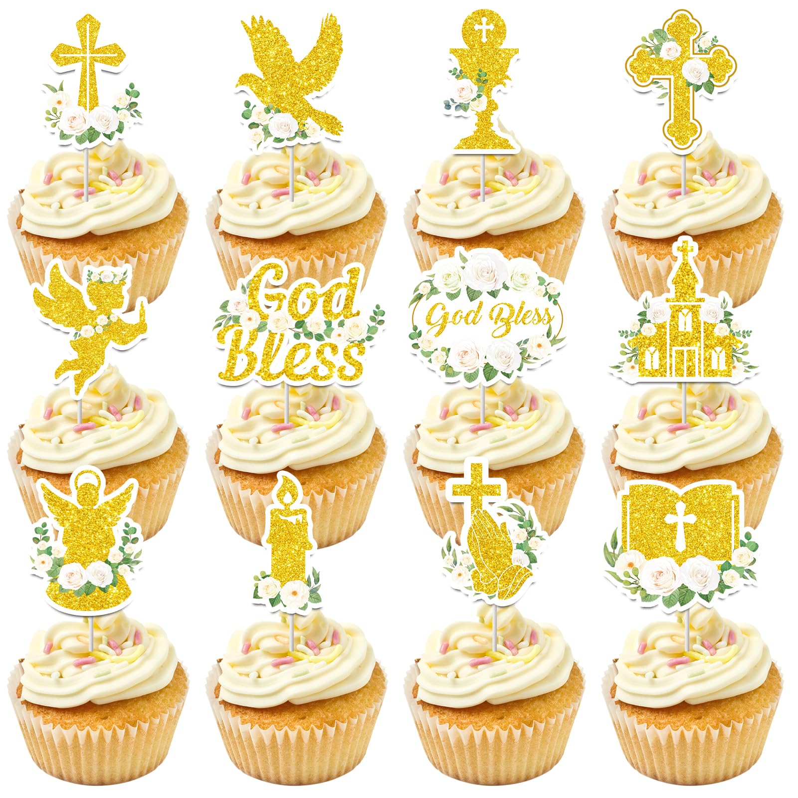 Gott Segne Cupcake Topper, Taufe Cupcake Topper, Taufe Cupcake Topper, Heilige Kommunion Cupcake Topper, Kreuz, Religiöse Essen Picks