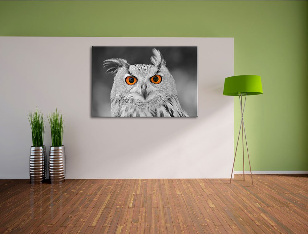 Pixxprint Die Eule Auf Dem Baumstamm, Größe: 60x40cm, Leinwandbild, Fertig Gespannt, Wandbild, Dekoration, Kunstdruck, Kein Poster