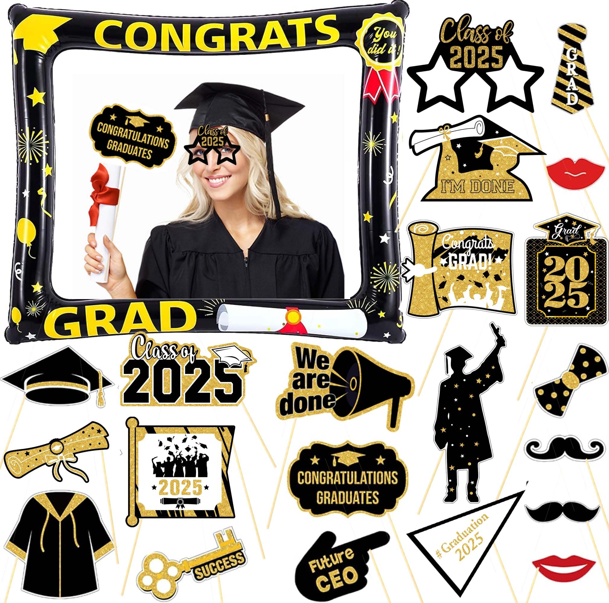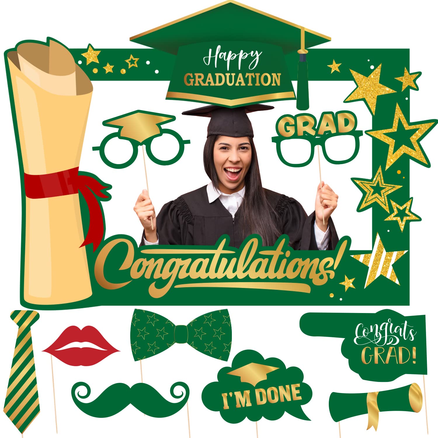 【Einfache DIY-Montage】Jede Foto-Requisite ist mit einem Holzstab und einem Klebeband ausgestattet, kleben Sie es auf die Foto-Requisite, Sie können lustige und niedliche Fotos mit Ihren Freunden und Klassenkameraden machen Geeignet für alle Abschlussfeiern. Dieses Foto-Requisiten-Set ist ein lustiges und modisches Geschenk, mit dem sie ihre Foto-Requisiten-Fotos in allen sozialen Medien veröffentlichen können Silvester Fotobox Foto-Requisiten Für Abschlussfeier, Grün Und Gold, 2023, Foto Foto Booth Silvester 2025 Erhöhen Sie Ihre Fotos] Graduation Photo Booth Props 2025 sind sorgfältig entworfen und stilvolle Requisiten, um Ihrer Abschlussfeier einen Hauch von... 【Klasse der Abschlussfeier 2025 Dekorationen】 Möchten Sie eine andere Art von unvergesslicher Party haben? Möchten Sie süße und lustige Bilder auf Ihrer Abschlussfeier hinterlassen? Diese grüngoldenen Abschluss-Fotoautomaten-Requisiten sind perfekt für Sie 【Graduation Photo Booth Props 2025】 Sie können Mix kommt mit 22 verschiedenen stilvollen und lustigen Mustern Abschluss Requisiten, wie Krawatte, Feuerwerk, Brille, Bart, Abschlusszertifikat, Abschlussnachrichten und so weiter, genug Menge und reichhaltige Stile, um Ihre Bedürfnisse zu erfüllen Dieses Foto-Requisiten-Set ist ein lustiges und modisches Geschenk, mit dem sie ihre Foto-Requisiten-Fotos in den sozialen Medien veröffentlichen werden! Breite Anwendung: geeignet für alle Abschlussfeiern. All diese Partyzubehör schaffen eine warme und glückliche Atmosphäre und perfekte Requisiten für Fotos mit all Ihren Freunden und Klassenkameraden!, After-Sales-Service. Abschluss Green Gold Script Class of 2025 Foto Ankündigung Die Congrats Grad Fotorahmen von Abschlussfeier kann eine wichtige Rolle spielen, um eine festliche Atmosphäre zu schaffen und den besonderen Anlass zu feiern