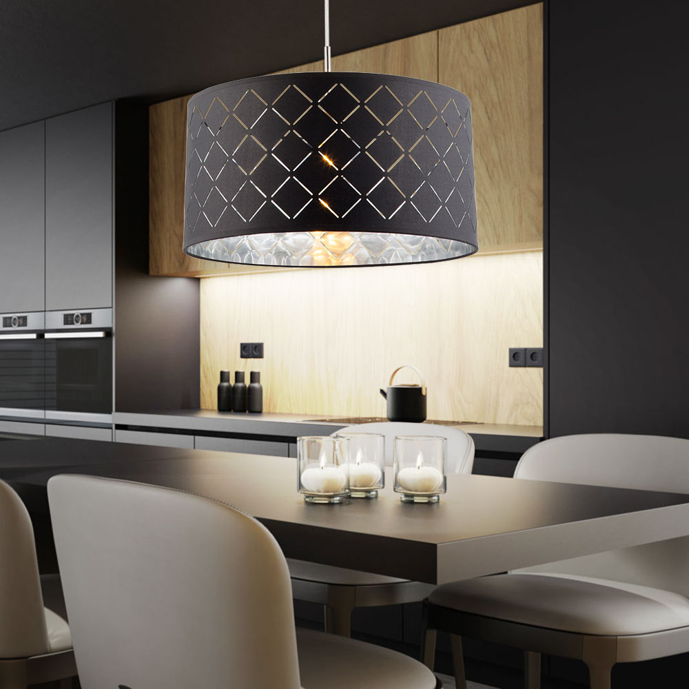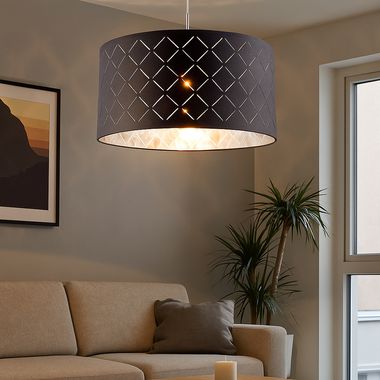 ✔️ TOLLE OPTIK - Diese LED Wohnzimmerlampe mit dunkelgrauen Stoffschirm besticht mit einem besonders schönen Stil und schafft eine tolle gemütliche Atmosphäre. ✔️ EINFACHE MONTAGE - Für eine schnelle einfache Installation befindet sich im Lieferumfang eine umfangreiche Montageanleitung und ein LED-Leuchtmittel. ✔️ INKLUSIVE LEUCHTMITTEL - Die Leuchte verfügt über 1x E27-Leuchtmittel LED mit 7 Watt. Moderne LED Hängeleuchte in Dunkelgrau mit Dekorstanzung, 40 cm LED Leuchtmittel 7 Watt - Textil dunkelgrau - Holz - Nickel matt Stilvolle Deckenleuchte mit Lampenschirm aus Textil Diese dunkelgraue Deckenlampe ist äußerst modern und wertet den Wohnraum optisch auf, Die Dekorstanzungen und die silber-metallicfarbene Innenseite der Lampe sehen einfach toll aus. Das warmweiße Leuchtmittel mit 806 Lumen ist im Lieferumfang enthalten. Das Leuchtmittel ist austauschbar und ist im Lieferumfang enthalten. ✔️ TOLLES LICHTSPIEL - Die Dekorstanzungen und die silber-metallicfarbene Innenseite der Lampe sehen einfach toll aus und sorgen für ein interessantes Lichtspiel an der Wand. GLOBO LIGHTING LED-Hängeleuchte, Leuchtmittel inklusive, Warmweiß, Hängelampe Pendellampe Esstischlampe höhenverstellbar LED H 120 cm, Energieeffizienzklasse F (März 2021 Esszimmerlampe Hängend Hängelampe Schlafzimmer Stoff Grau - Hängeleuchte Wohnzimmer LED Pendelleuchte Wohnzimmer Verschönern Sie mit dieser Pendellampe Ihren Wohnbereich oder bringen Sie in Ihre Küche ein modernes Design. ✔️ VIELSEITIG EINSETZBAR - Verschönern Sie mit dieser Pendellampe Ihren Wohnbereich oder bringen Sie in Ihre Küche ein modernes Design. Hängeleuchte, Textil, anthrazit, silber, H 140 cm | ETC Shop 140 x 40 cm Spannungsversorgung:- 230V Lieferumfang:- originalverpackte Neuware wie oben beschrieben Hängelampen Stoff - Pendelleuchten aus Stoff für Wohn- und Schlafzimmer | Kauf auf Rechnung sicheres Bezahlen schneller Versand