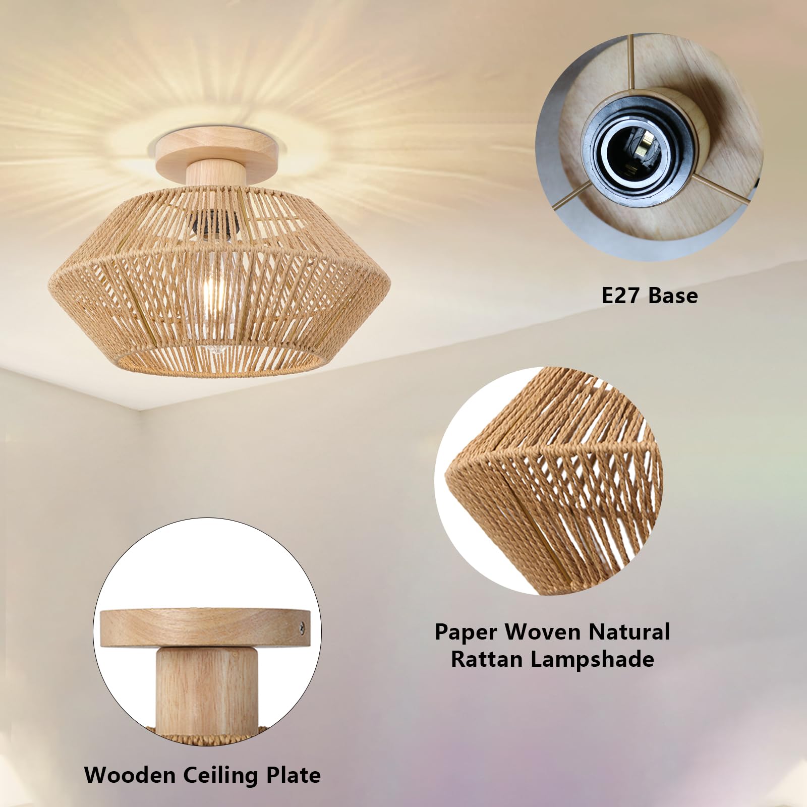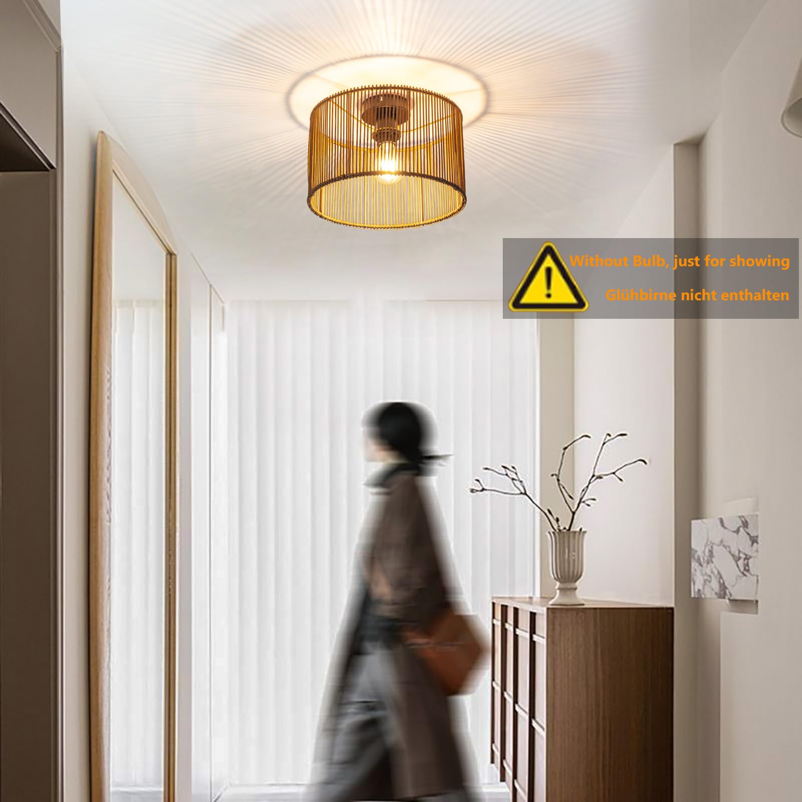 Die Lampe ist für E14-Birnen bis 60W geeignet und dimmbar - perfekt für romantische Abende oder praktisches Arbeitslicht. Einfache Installation dank... Diese Deckenleuchte eignet sich für alle Stilrichtungen, ob Vintage, modern oder industriell. Der Schirm besteht aus hochwertigem, robustem Metall mit einer glatten und haltbaren schwarzen Beschichtung und einer hochwertigen Einbrennlackierung für eine gleichmäßige und lang anhaltende Farbe. Euluna Deckenleuchte Boho jute, naturbraun, Textil, 45cm Deckenlampe Boho LED Graue Runde Deckenleuchte Zur Deckenmontage | Deckenleuchte Für Deckenlampe Braun Rattan-Leuchte mit 3 Leuchten] Diese halb bündig montierte Deckenleuchte besteht aus 100% handgeflochtenem natürlichem Rattan und langlebigem Metall, das umweltfreundlicher, sicherer und gesünder ist. Sie müssen sich nie über Rost, Korrosion oder Verblassen sorgen