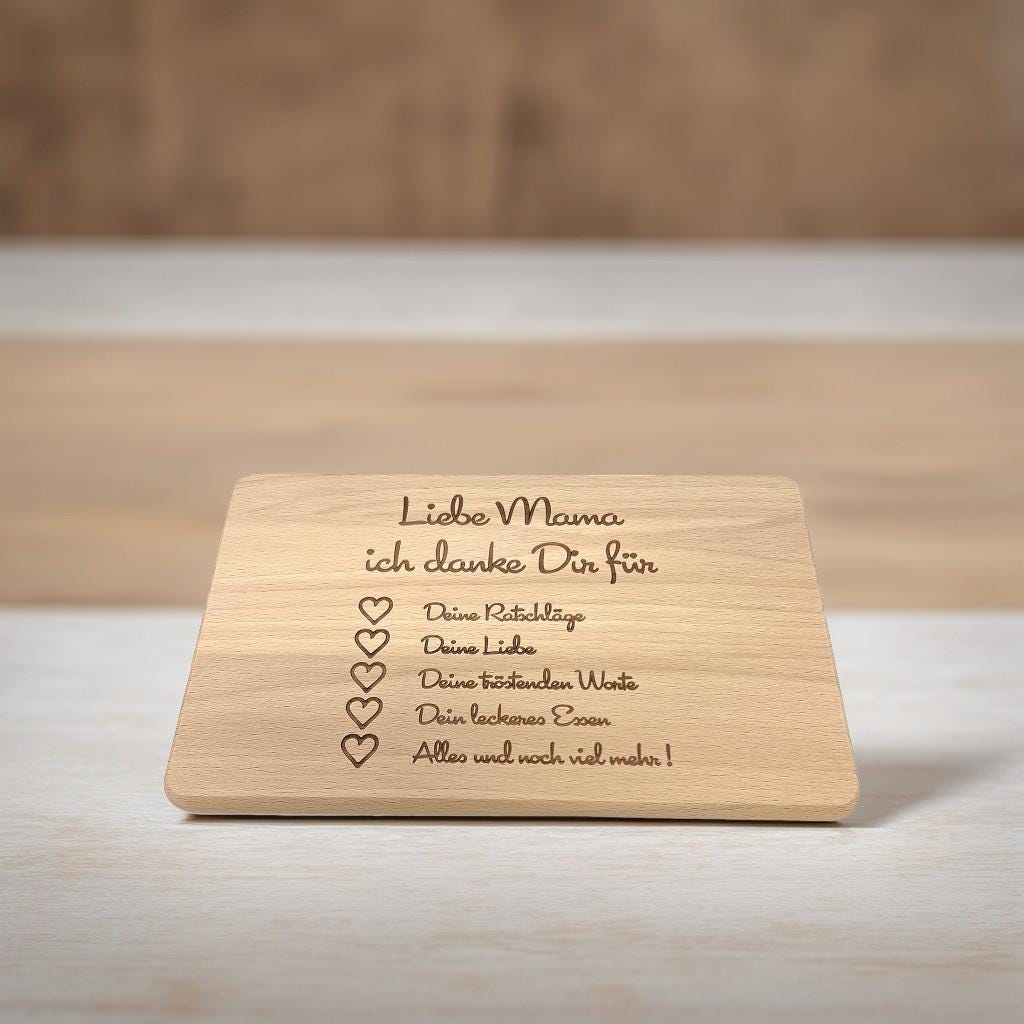 LIEBTASTISCH Frühstücksbrett Mit Gravur - ''Liebe Mama, Danke Für ...'' - Holz - Hochwertige Qualität - Schneidebrett - Muttertag