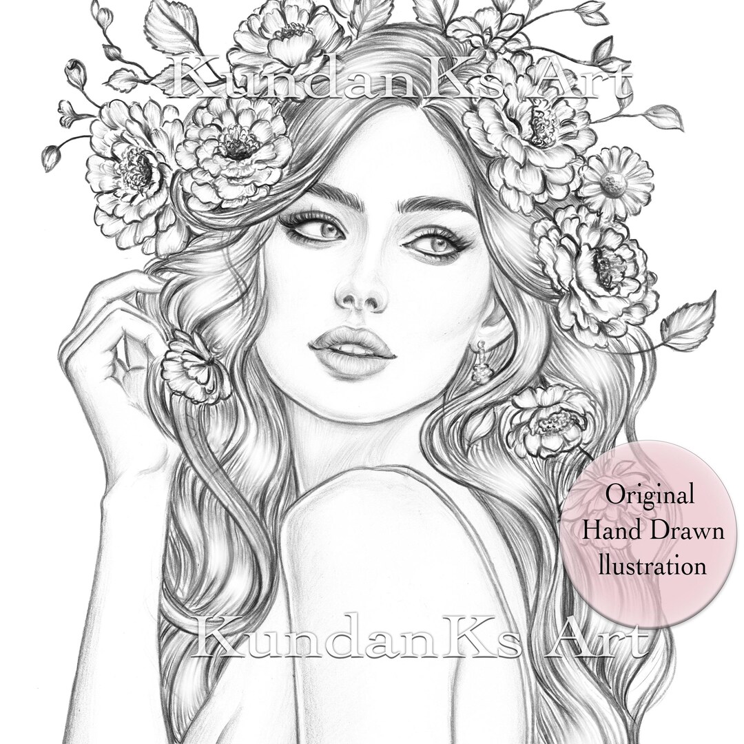 drawng of a beautful grl n a straw hat Pencl Portrat Drawng... Face of a woman with a beautiful floral hat, 20's style - Vintage Coloring Pages Floral Crown Beautiful Portraits Grayscale Adult Coloring Books: Beautiful Faces Of Woman With Flower Head Dress : Printables, Aubreys, Printables, Aubreys