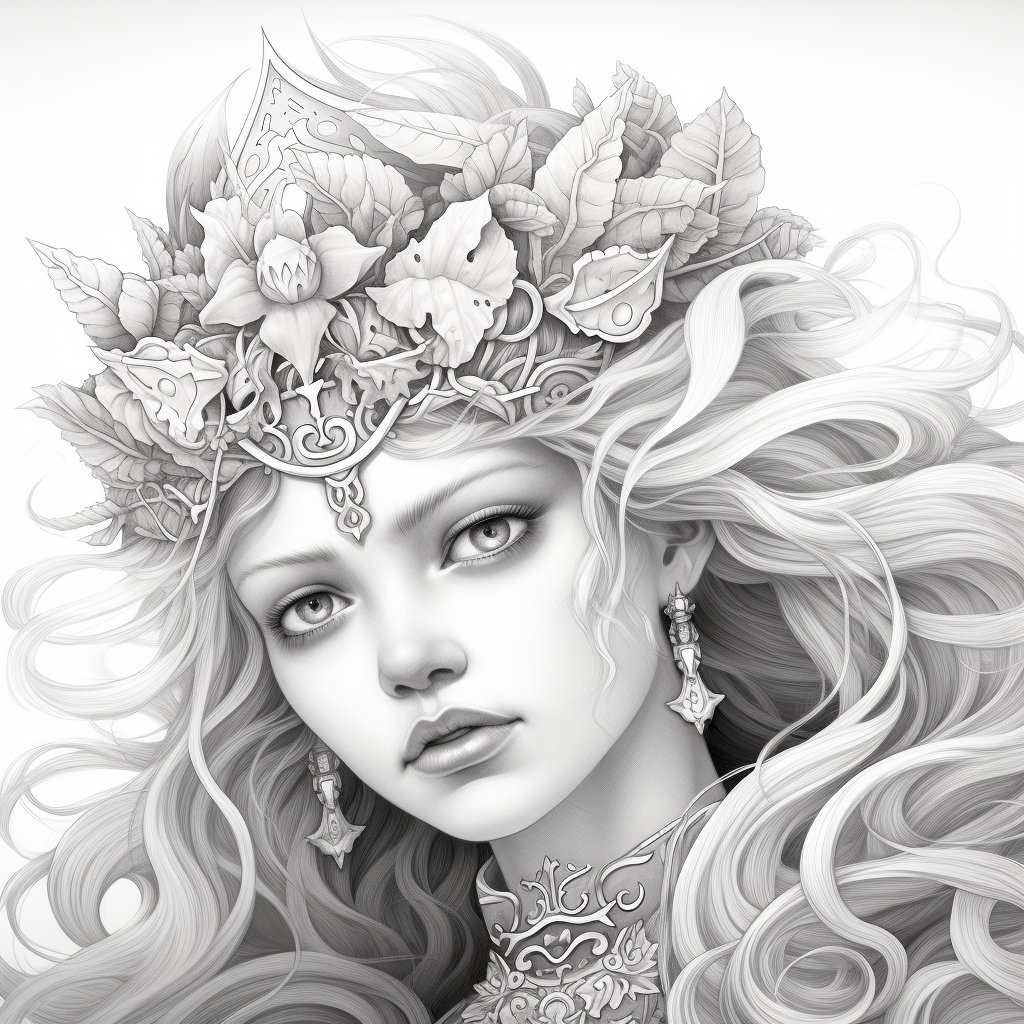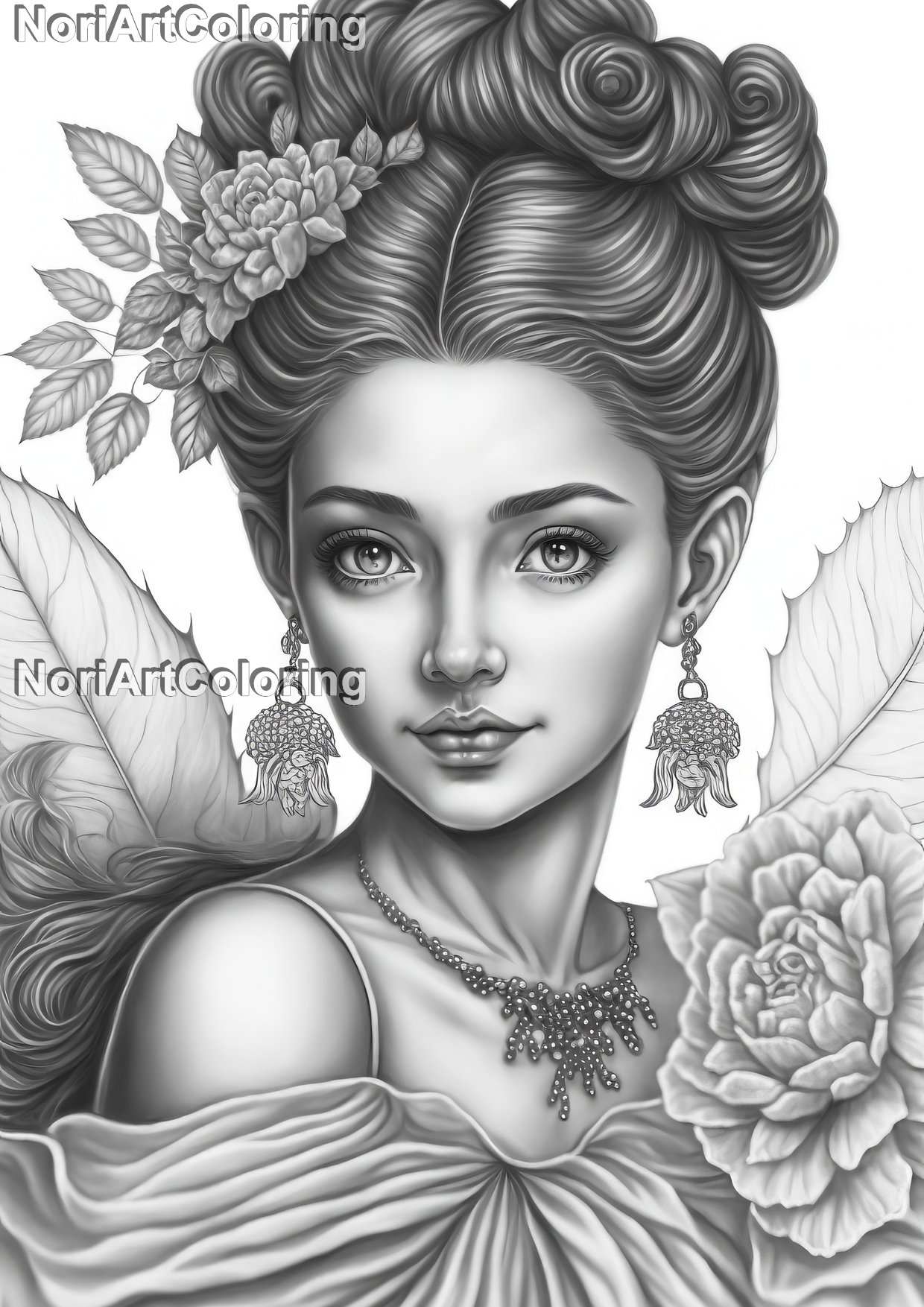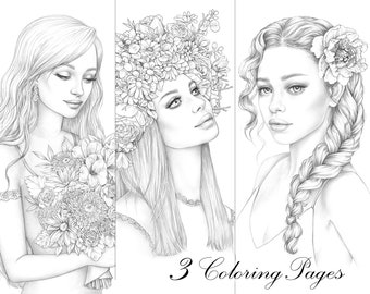 Floral Crown Beautiful Portraits Grayscale Adult Coloring Books: Beautiful Faces Of Woman With Flower Head Dress : Printables, Aubreys, Printables, Aubreys