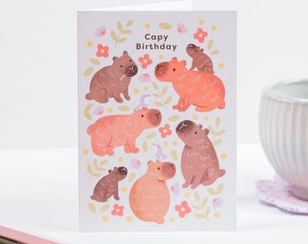 1 X Greeting Card - Happy Birthday Capybara Funny Cute Animal Kids Brother Sister Gift #0274