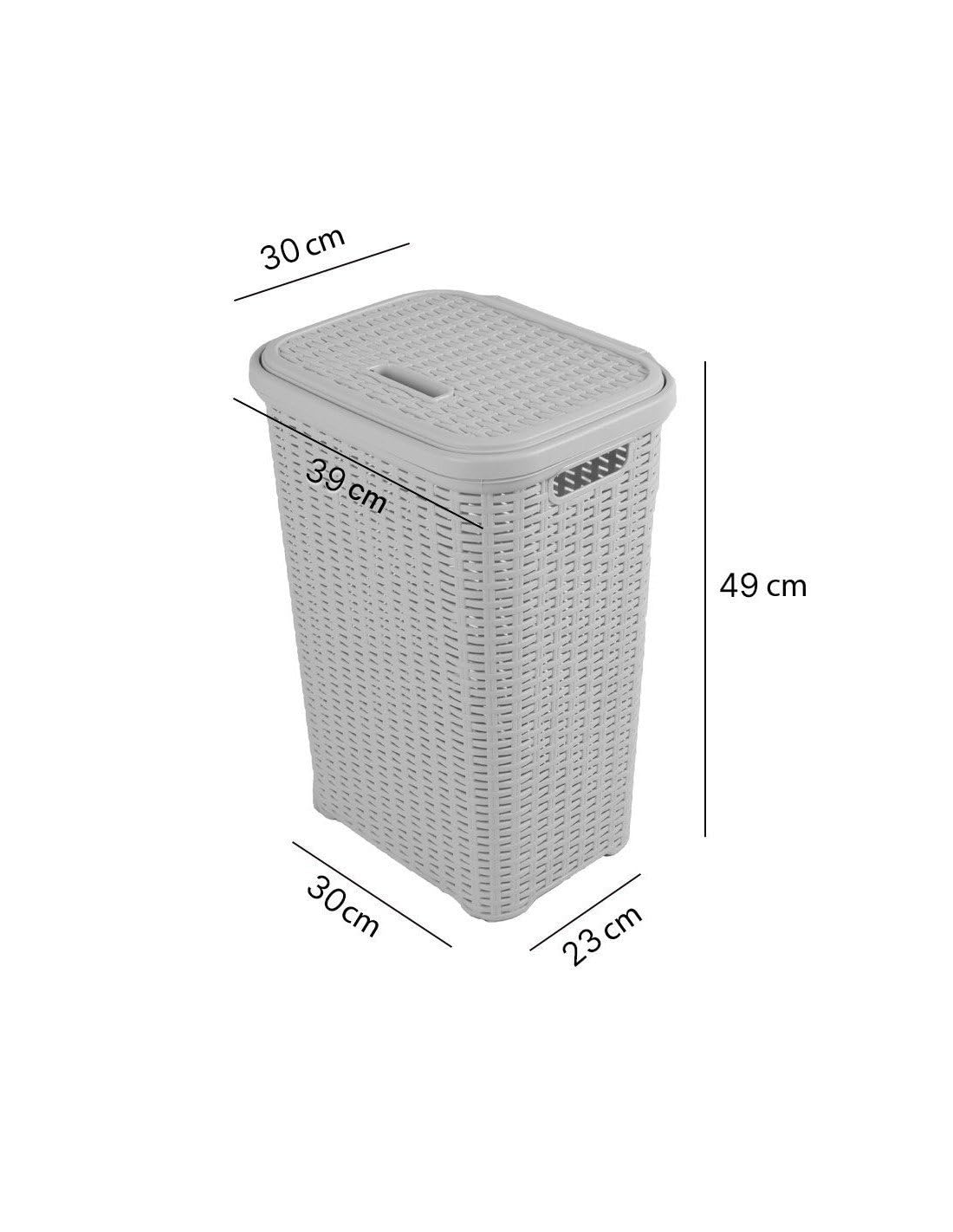JARDIN202 - Wäschekorb Aus Kunststoff Mit Griffen, 38 L, Mit Deckel, 49 X 39 X 30 Cm, 38 Liter (Grau