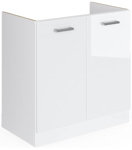 Laclar Küchenschrank Unter Spüle LUGO - Acrylfronten - Grifflos - Verstellbare Füße - 80x52,8x82 Cm - Zwei Türen - Einfache Montage - Modern Und Funktional - Artisan-Eiche