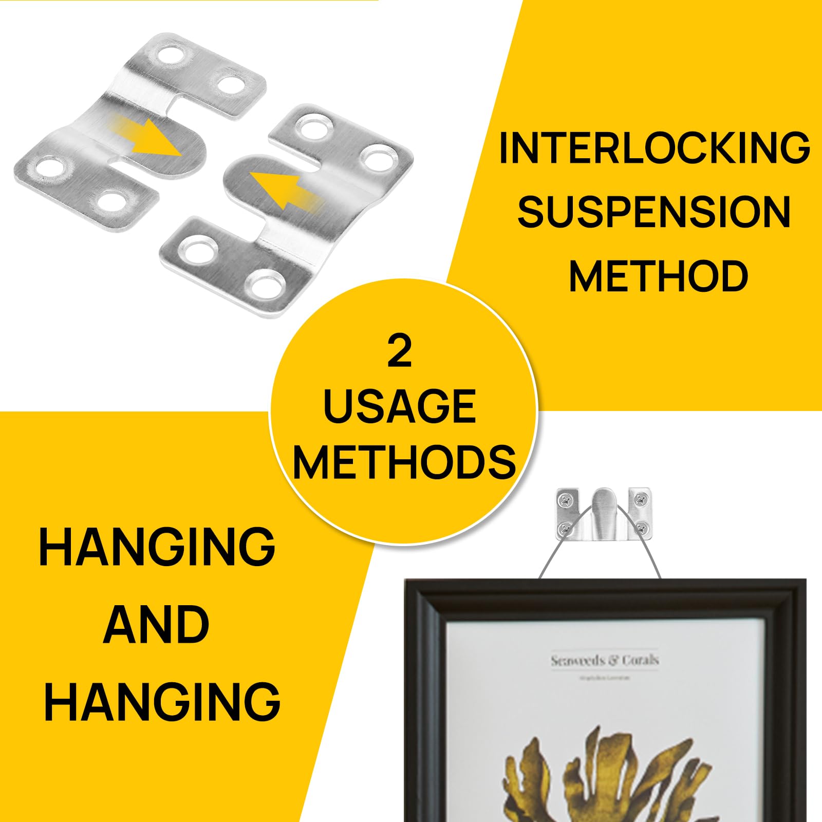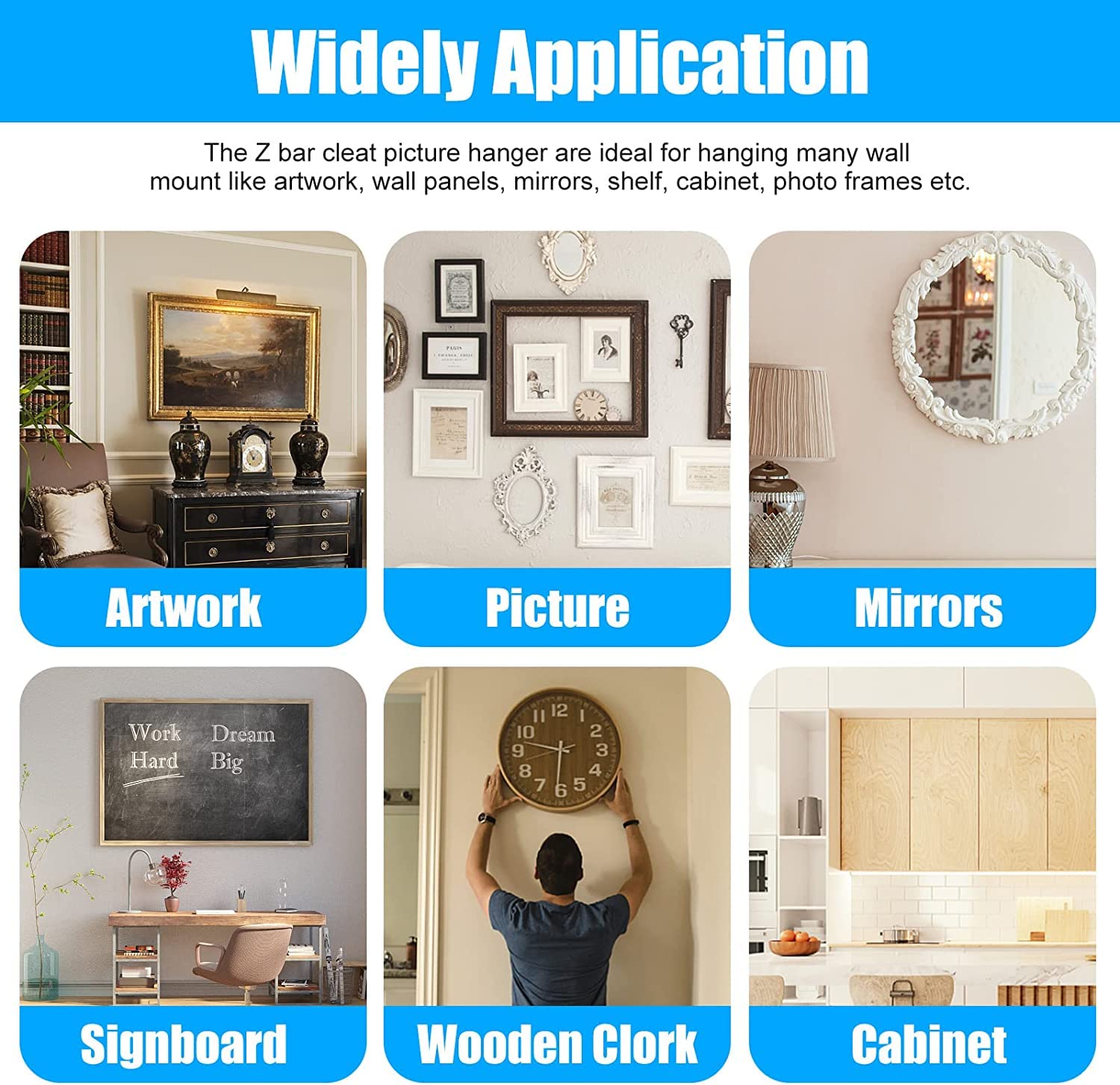 FVIEXE 4x43.2 Cm Große Französische Stollen-Aufhänger, Robuster Metall- Bilderaufhänger, Z-Stangen-Aufhänger, Ineinandergreifende Aluminium-Z-Clips Zum Aufhängen Von Bildern, Wandmontage, Hardware-Kit