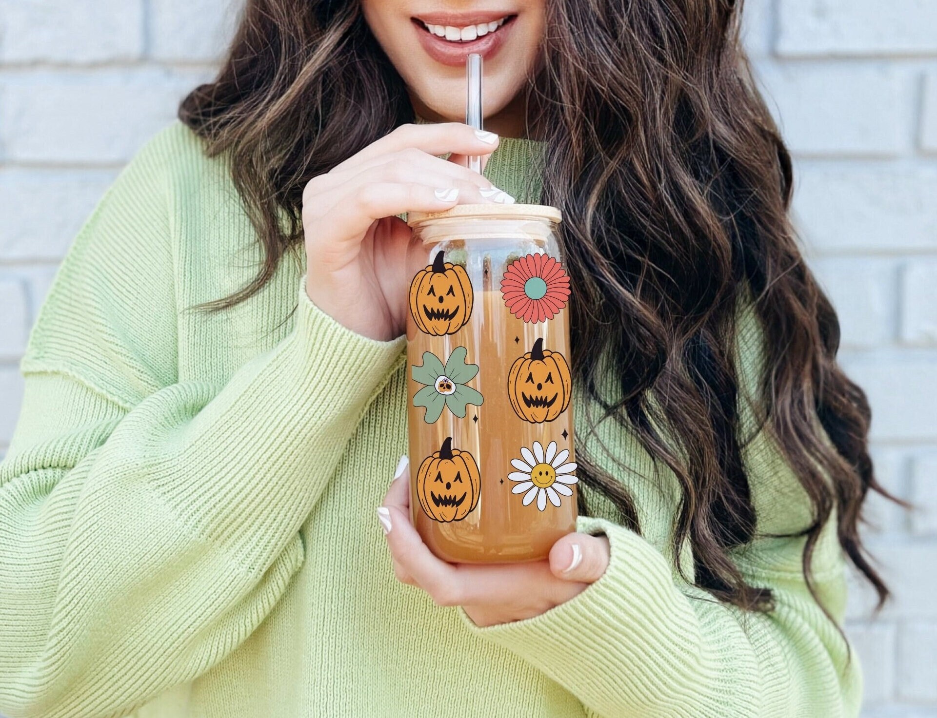 Gruselige Geister-Glastasse - 16 Unzen Herbst-Kaffeetasse Mit Bambusdeckel Und Glasstrohhalm - Halloween-ästhetischer Becher - Gemütliche Geistertasse