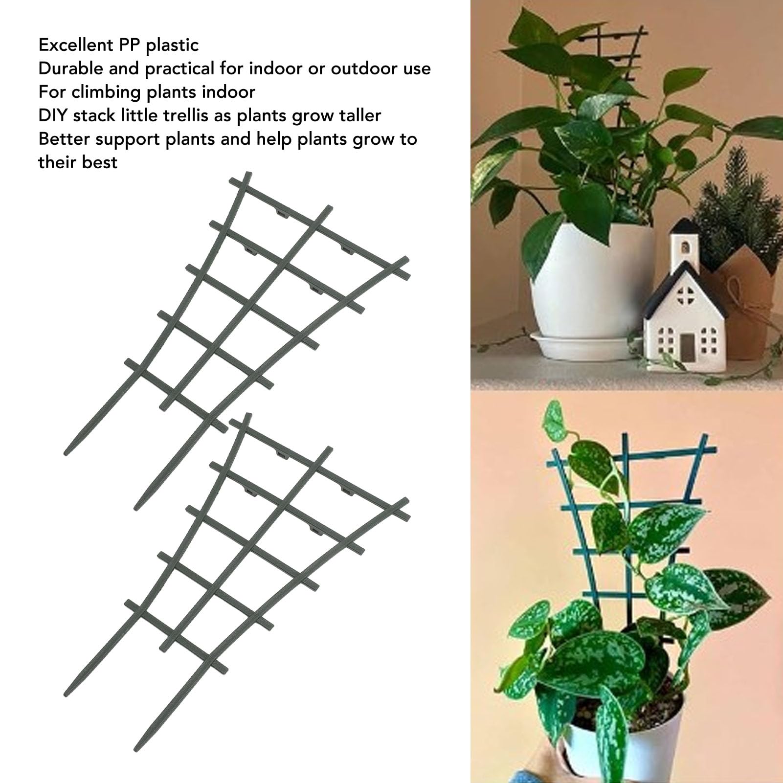 INSGESAMT 6 STÜCK: Das Paket enthält insgesamt 6 Stück Rankgitter für Zimmerpflanzen, genug, um sie auszutauschen und zu verwenden, sehr praktisch und bietet eine stärkere Unterstützung für Ihre Topfpflanzen. Creyoo Gartenstände, 24 Pflanzenstöcke Gartensäule VIELFÄLTIGE ANWENDUNGEN: Spaliere bieten eine hervorragende Kletterpflanzenunterstützung für kleine Kletterpflanzen, Hoya, Pothos, Kräuterpflanzen, Zuckererbsen, kleine Rosenbüsche, Begonia Maculata, Englisches Efeu in Töpfen und junge Starterpflanzen wie Gurken, Mungobohnen usw. Stapelbares Klettergitter für Pflanzen: Schönes Rankgitter zum Klettern von Pflanzen im Innenbereich. Auch ideal zur Stabilisierung von Topfpflanzen geeignet. STARKE PFLANZENSTÜTZUNG: Das Rankgitter für Zimmerpflanzen eignet sich hervorragend zum Stützen von widerspenstigen Stängeln und herabhängenden Ästen kleinerer Pflanzen, um hängende Pflanzen vom Boden oder Tisch abzuheben. Einer der vielen verfügbaren Artikel aus unserer Bögen, Gitter, Laubengänge & PergolenAbteilung hier bei Fruugo! Rankgitter Kunststoff Gurkenpflanzenstütze - Kostenloser Versand Für Artikel, Die Von Rankhilfe Zimmerpflanzen Sie können das kleine Rankgitter selbst stapeln, wenn die Pflanzen größer werden, was die Pflanzen besser unterstützt und ihnen hilft, optimal zu wachsen. QYANPEN Großer Gartenbogen, für Rosen, Kletterpflanzen, Stütze...