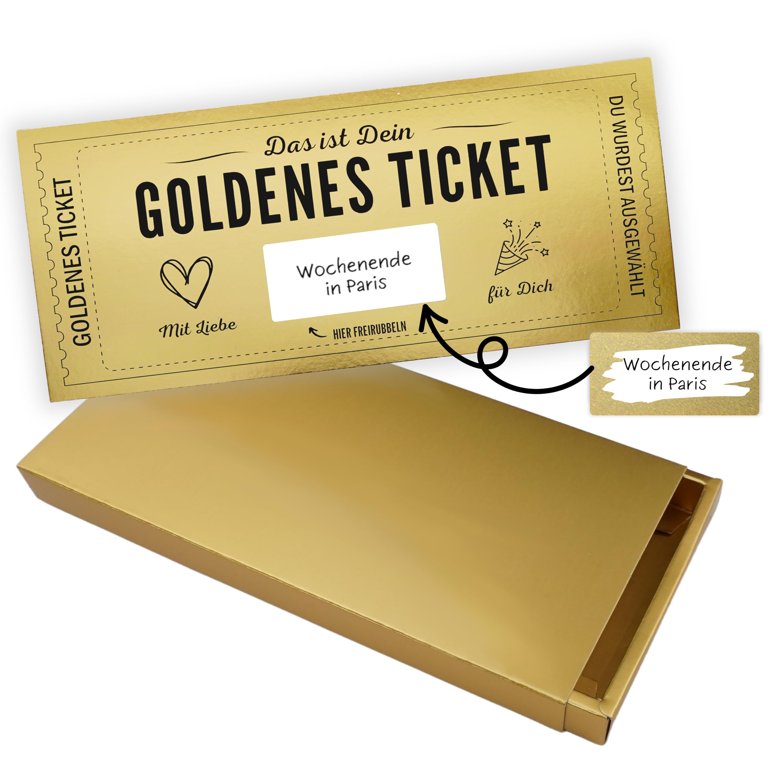 CPRNQY 2 Stück Goldenes Ticket, Golden Ticket, Gutschein Zum Mit Aufkleber, Personalisierte Geschenke, Rubbelkarte Zum Beschriften, Geburtstagskarte, Reisegutschein, Geschenke Für Frauen Und Männer
